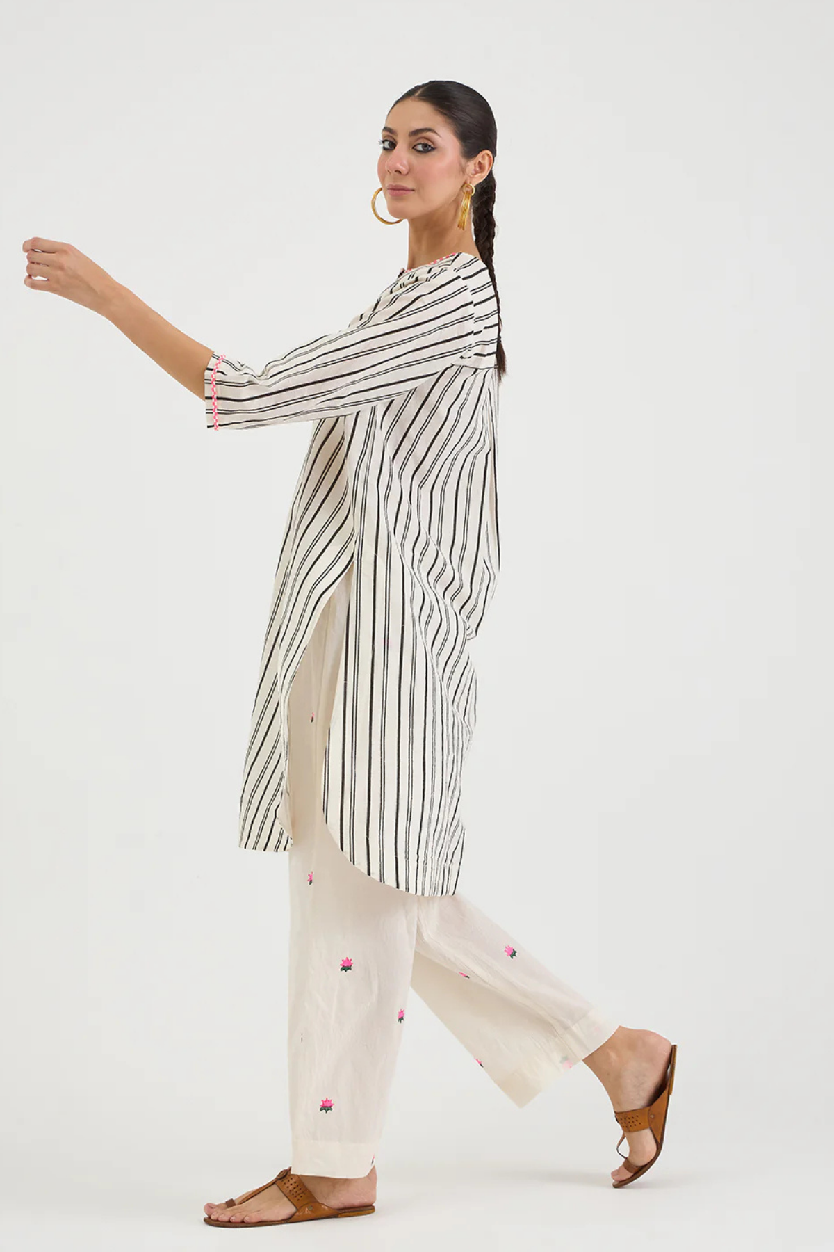 Classic kurta cut, hand embroidered and paired with delicate lotus print pants