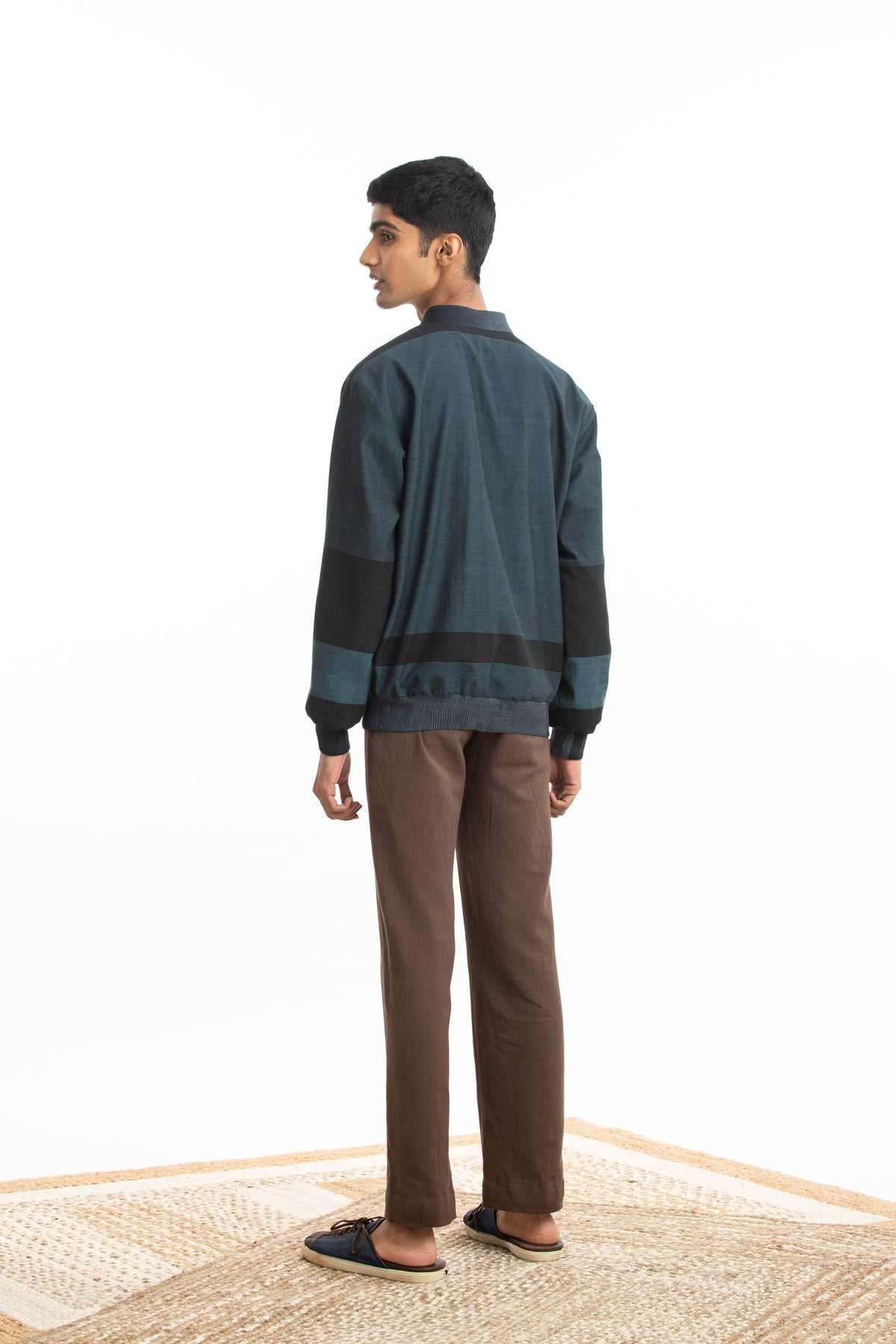 Handwoven in fine Cotton, this bomber jacket makes for luxurious