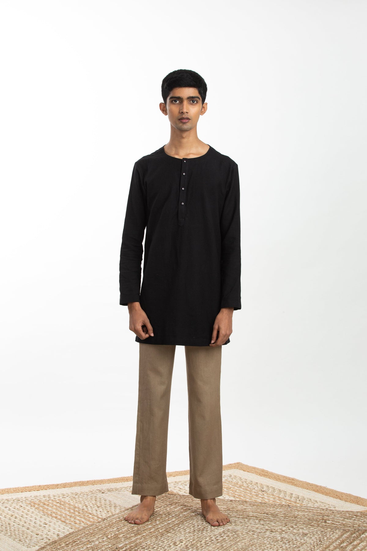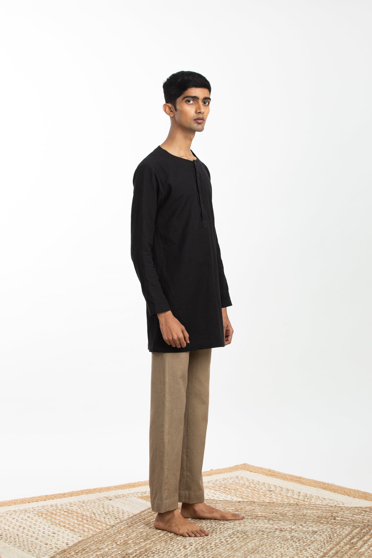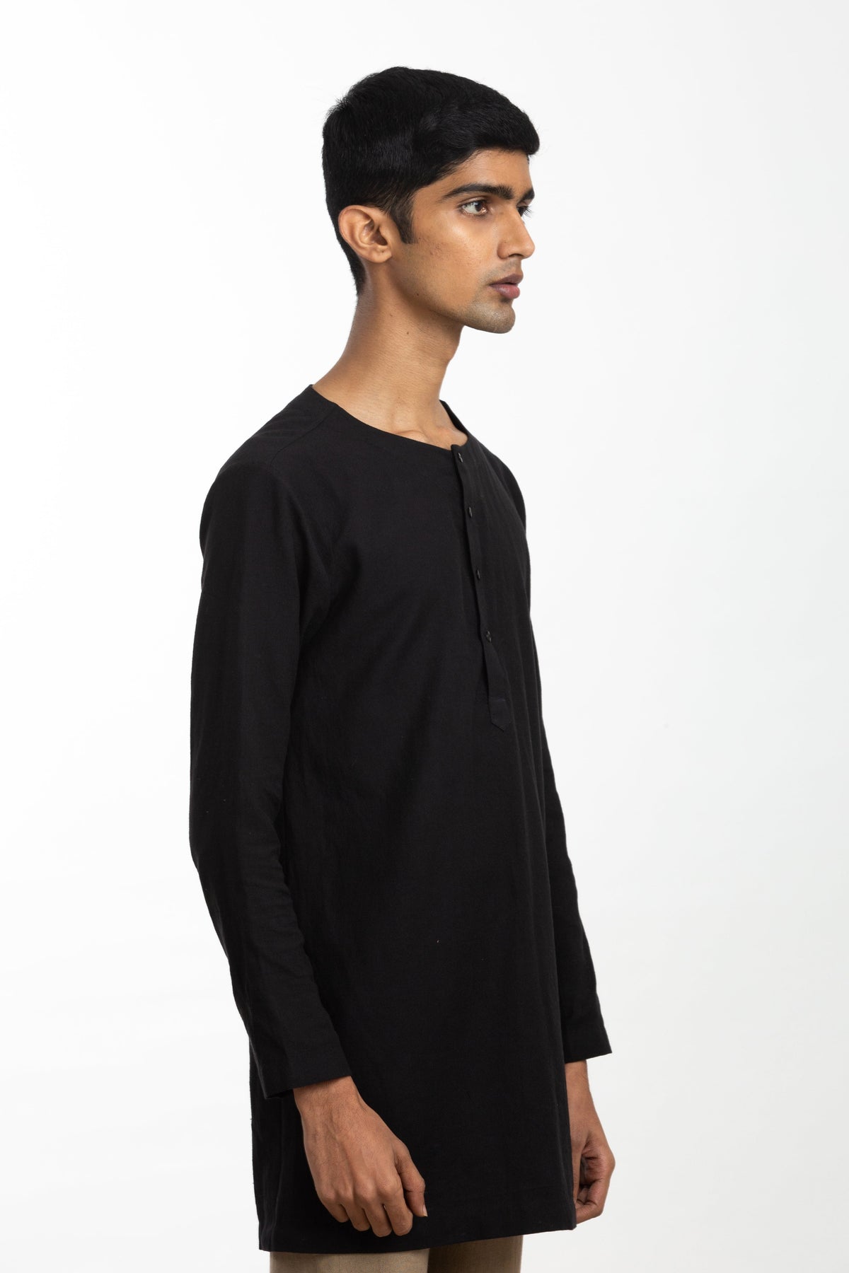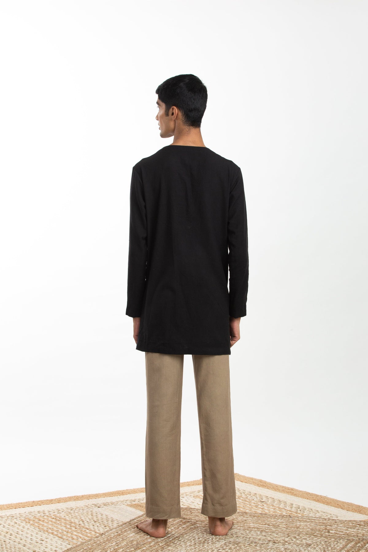 Handwoven Black Zen Shirt Kurta Men Akaaro Men
