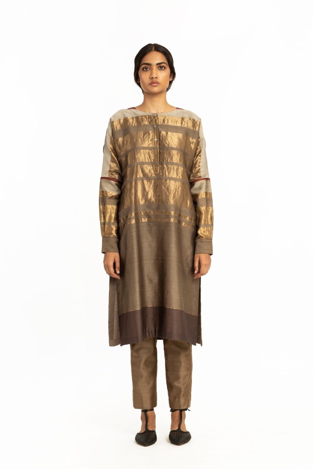 Handwoven in silk,cotton and zari; this tunic makes for a luxurious and comfortable wear.