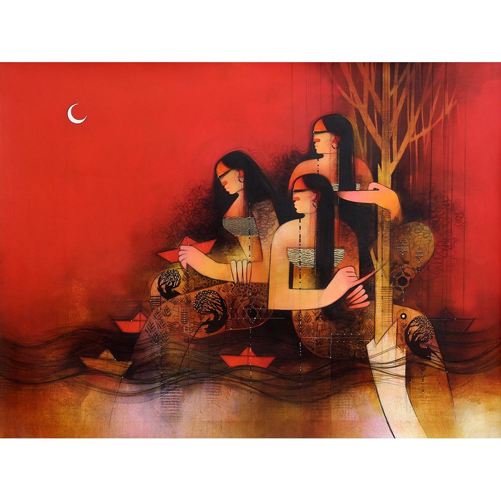 Amol enjoys exploring all mediums and likes to experiment in various forms, color schemes and textures. Most of his paintings are a fusion of the abstract and figurative. His work is steeped in the Indian mythology and his love for calligraphy, texture, nature, and animals is reflected in his work.