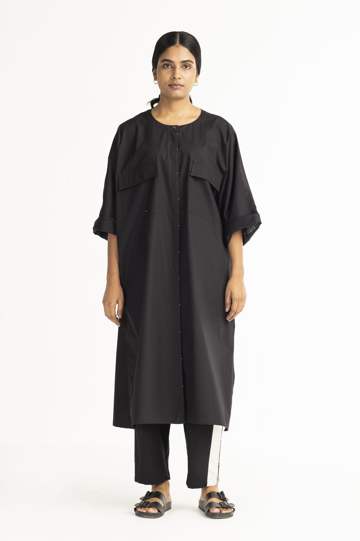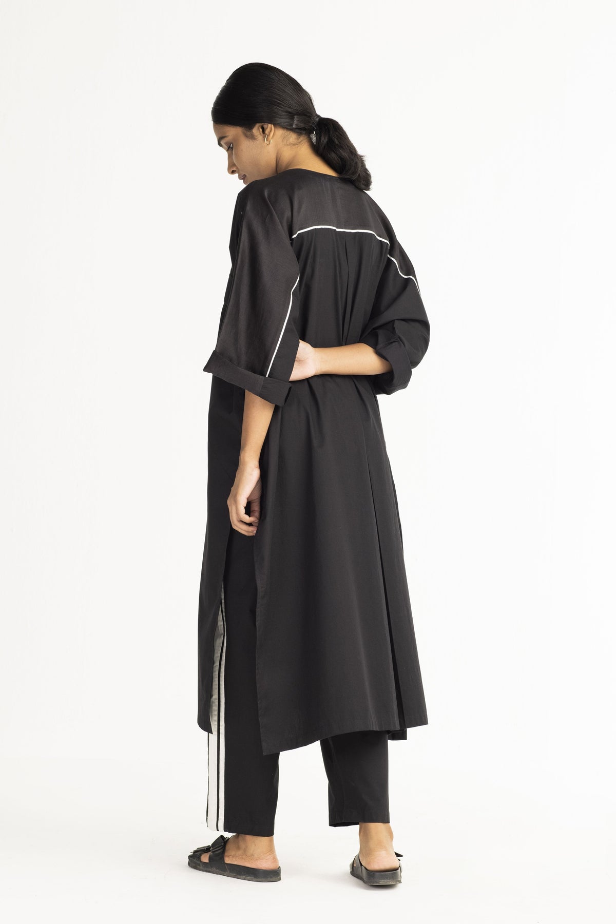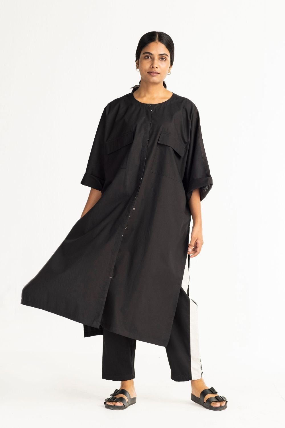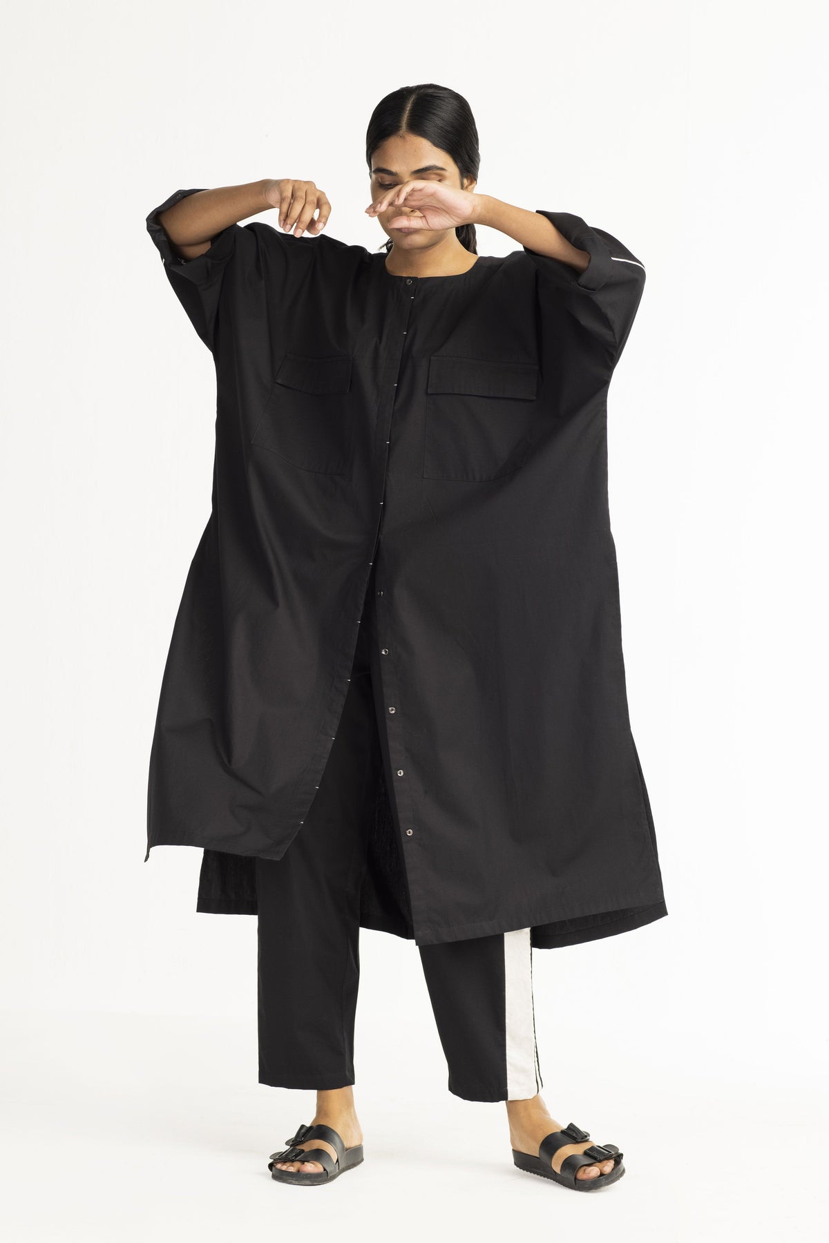 Clever cuts, asymmetric patterns, a neutral palette and simplicity of geometric details form the core aesthetic of the brand. Their love for asymmetry and imperfection clearly reflects in their silhouettes and hemlines. The label is a modern mix of conceptual and wearable clothing which defies age bar as the ensembles exude comfort, more so with their signature anti-fit coords.