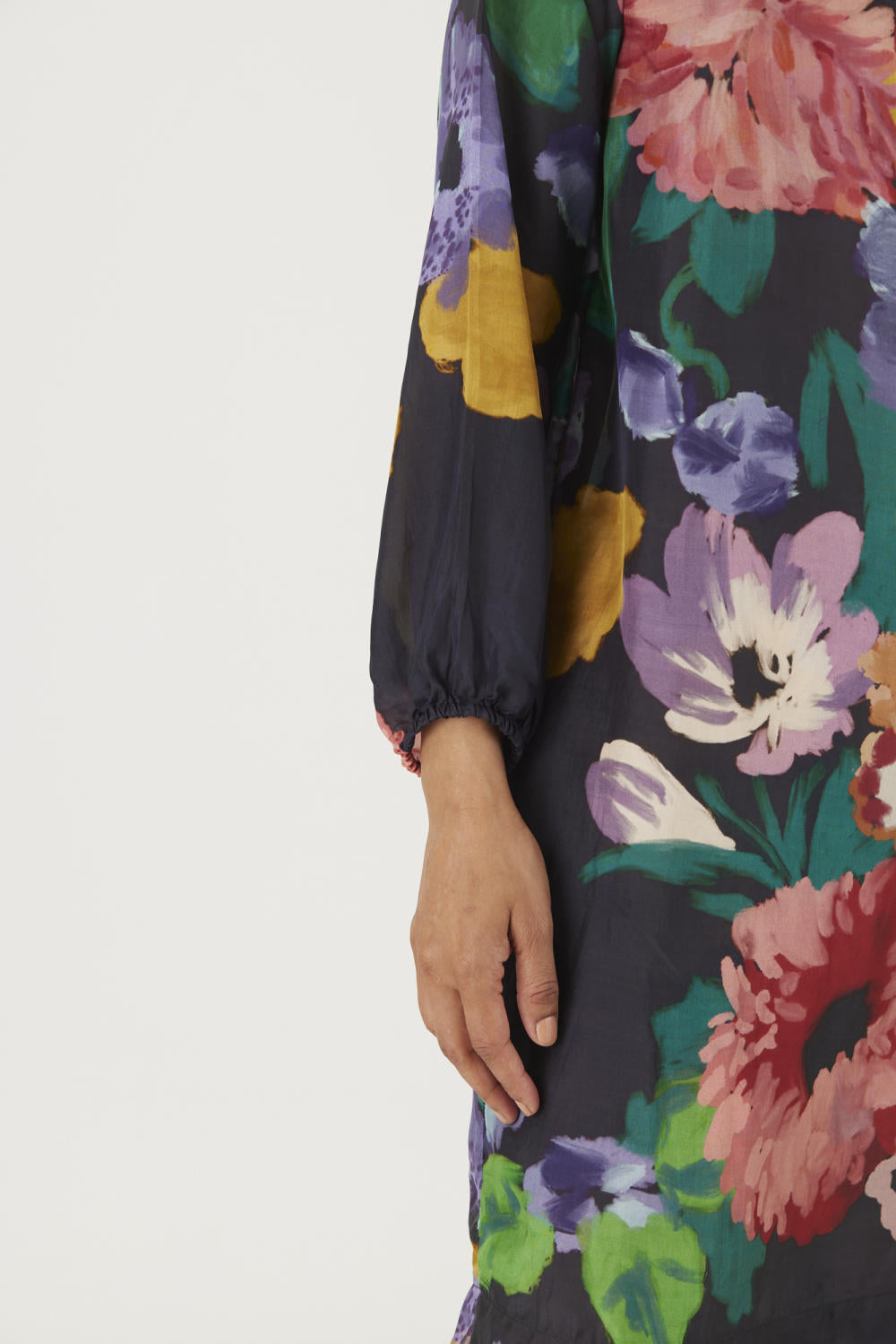 Priya’s strength lies not just in the imagery she creates, but in how she translates it onto silhouettes that honour real bodies. Her pieces are designed with ease and movement in mind — styles that drape, soften, and adapt effortlessly across sizes and shapes. Nothing feels intimidating; everything feels wearable.