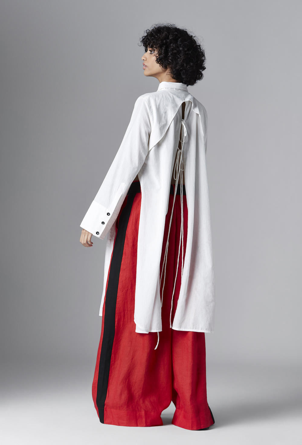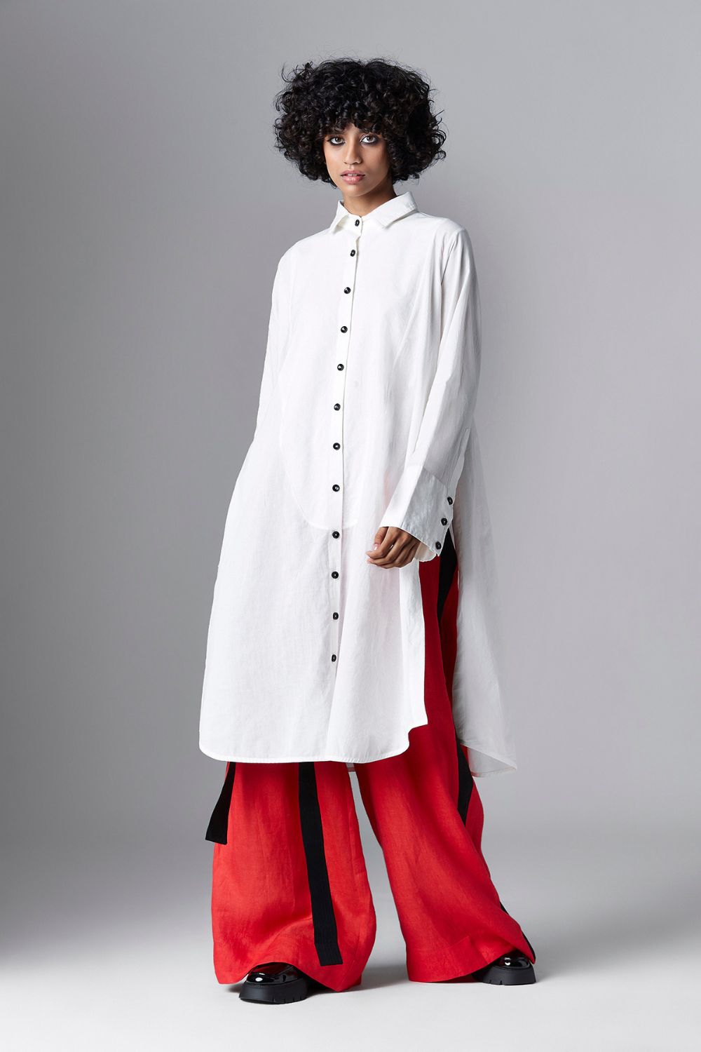 A LINE LONG SHIRT WITH SIDE SLITS, FULL SLEEVES, U BACK FLAP AND BACK TIE UP