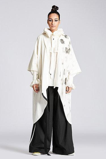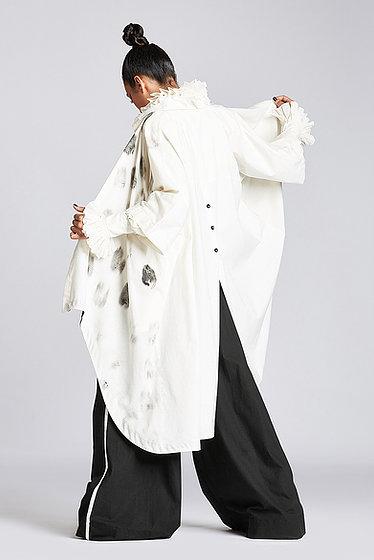 Hand painted drop shoulder jacket with shirt collar, front open and back button down placket