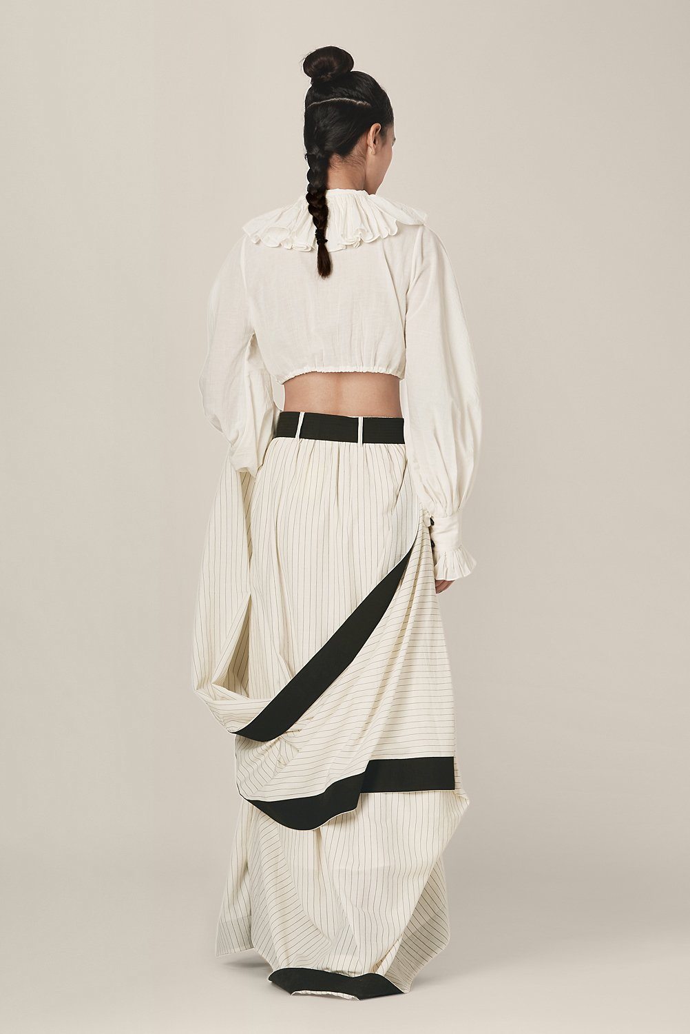 Ophelia Shirt features a frill collar, exaggerated bishop sleeve with ruffled cuff and drawstrings at the hem.
