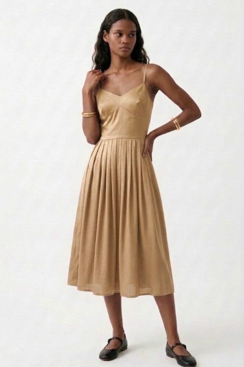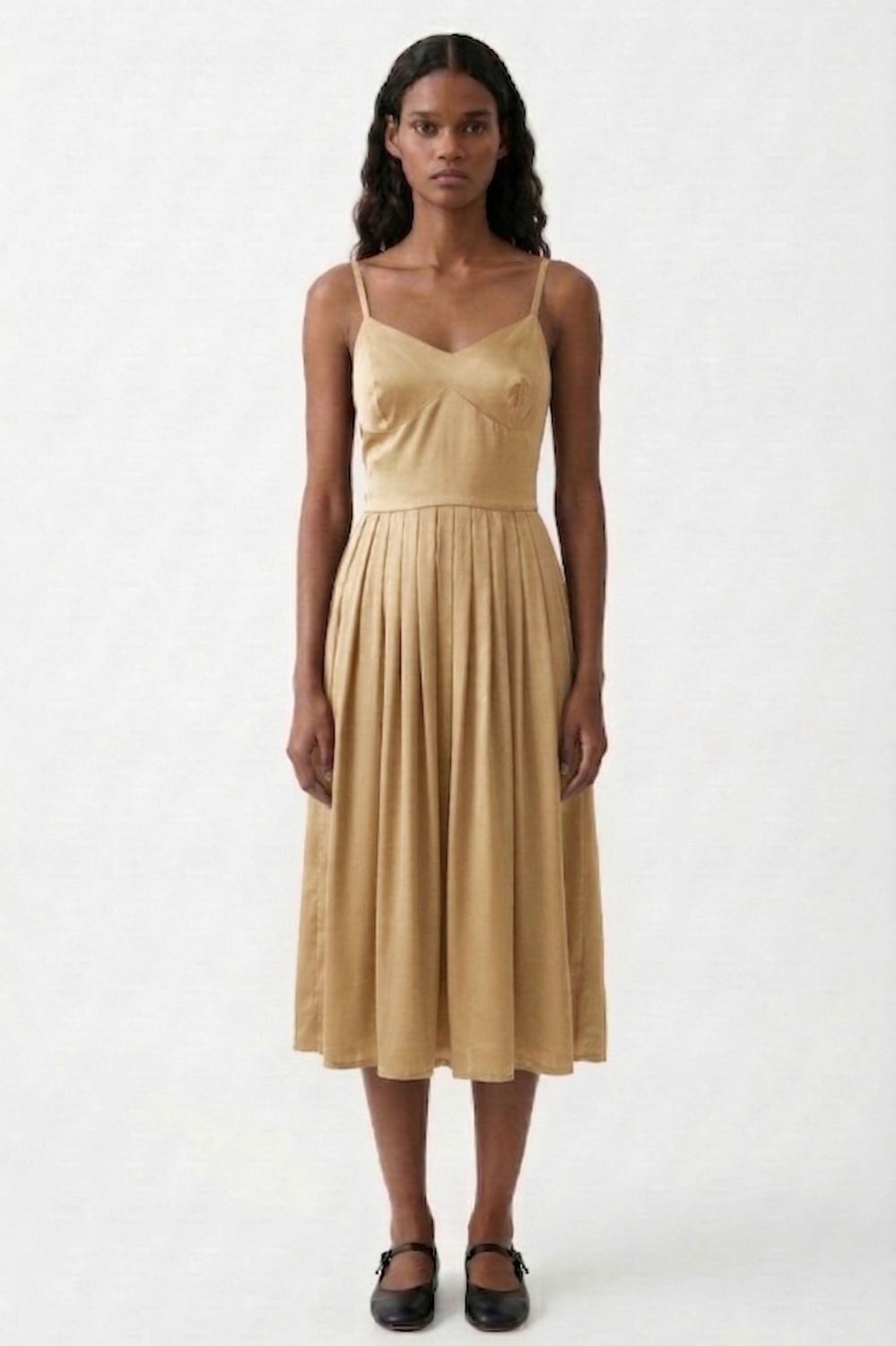 Description: A playful sundress with pleated waist, a charming back bow, and inseam pockets. Perfect for sunny days, wear it solo or layer under a denim jacket for a casual look.