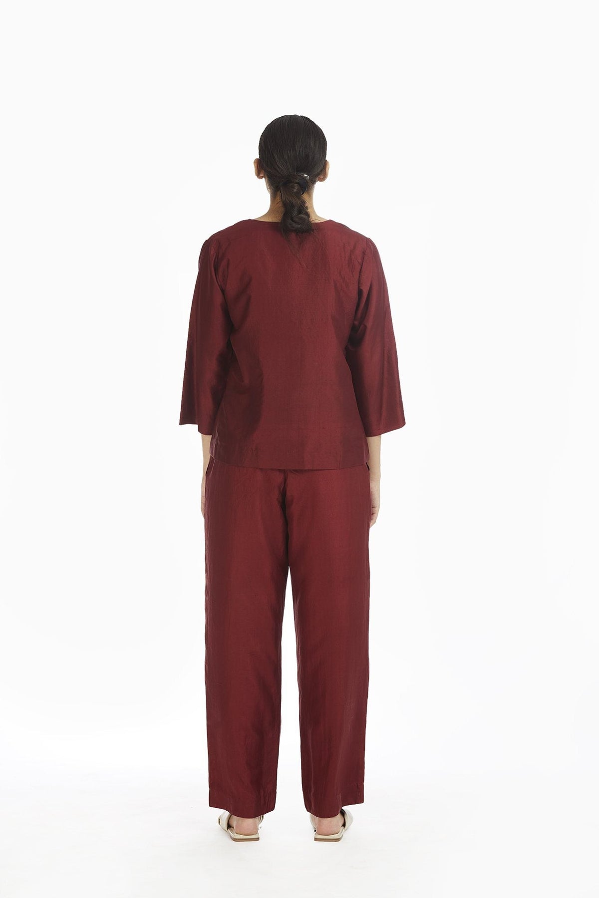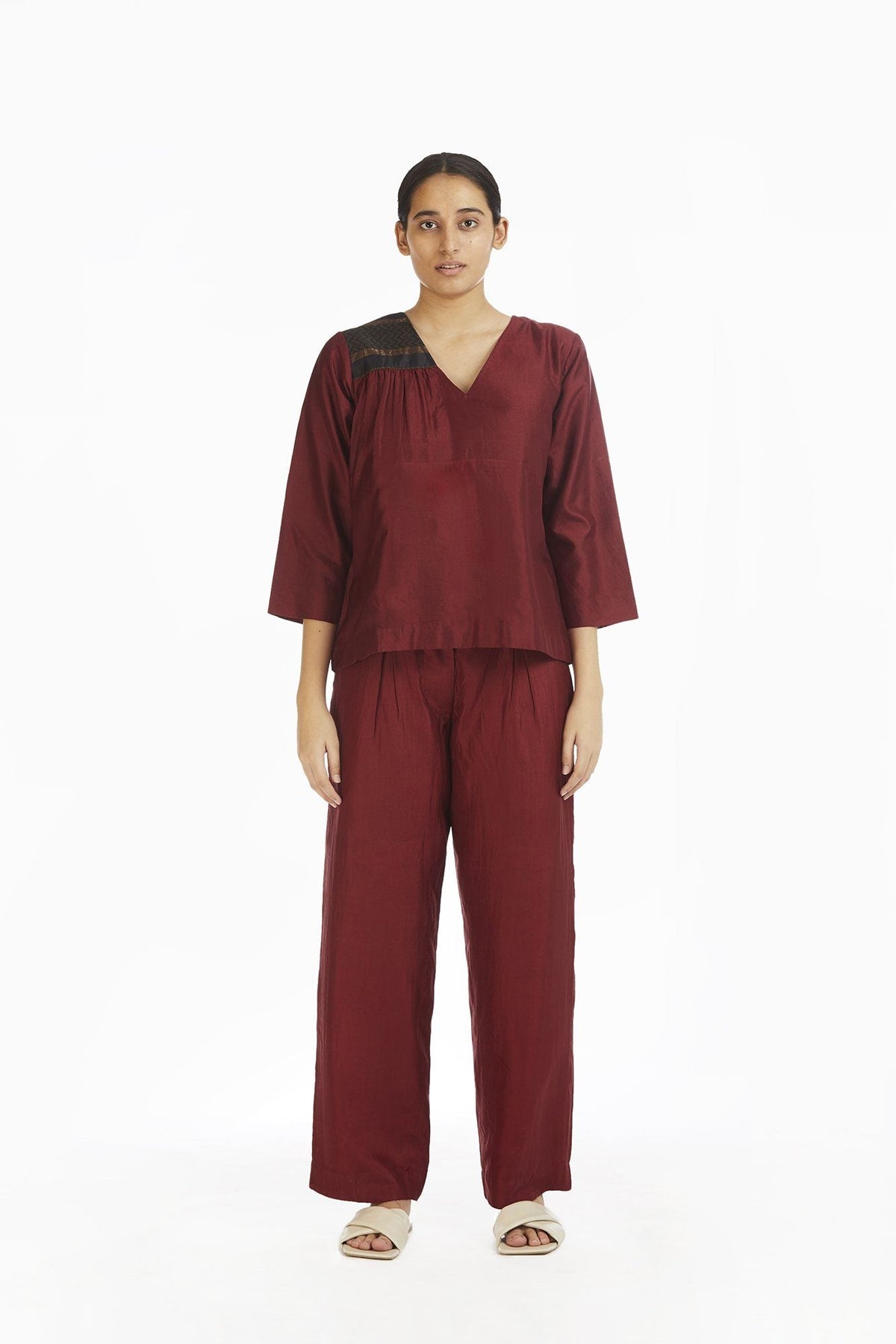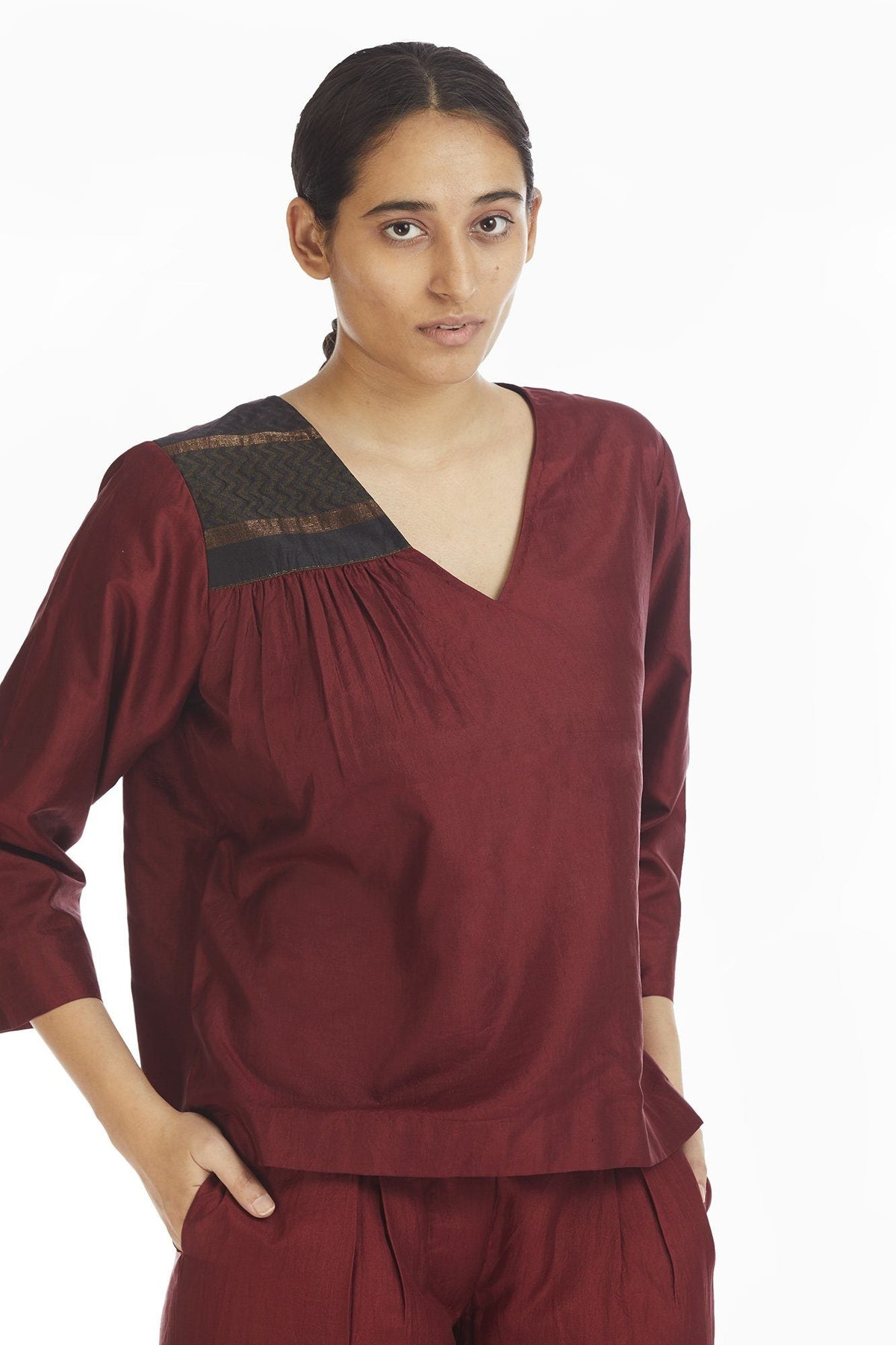 Handwoven in Silk, this engineered top makes for a luxurious and comfortable wear. A wardrobe essential this is an innovative smart mix of materials ; the stripes in the patch and minimal glaze makes it a must have due to the optical appeal. An akaaro bestseller the fabric is designed by AKAARO and hand woven in West Bengal , India.