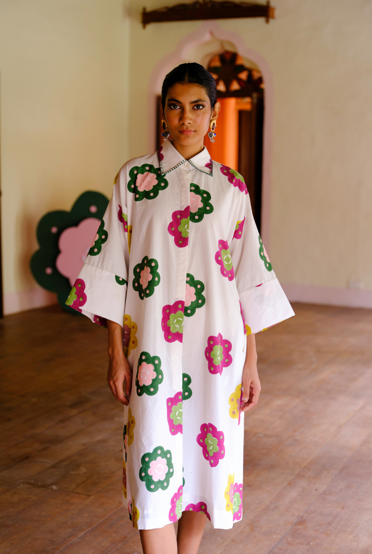 We love shirt dresses! This one’s hand-block printed in cotton with that classic shirt silhouette and loose sleeves for extra comfort. With some fun hand-embroidered collar detailing and, oh yes, pockets! We believe customers have a right to know how their product was made. 4 metres of cotton poplin fabric sourced from Jaipur has been used for this piece. Hand-printed by our artisans in Jaipur, manufactured in our workshop at Pune India. This product is hand-printed in Jaipur, India, using traditional techniques. Subtle variations in patterns are natural to this process. We believe this makes each creation unique and charming. Some call it je ne sais quoi. We call it JODI. If you wish to have the length of the garment altered, please mention your request in the special instructions section at checkout, with your desired length.