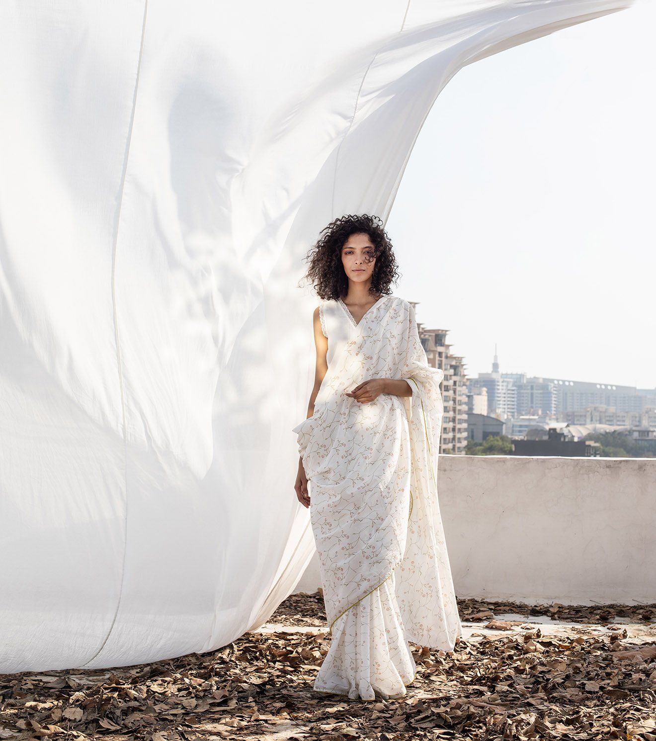 Styled with our 'sprouting' crop top. *This product consists of just the saree. The crop top isn't included in this product.