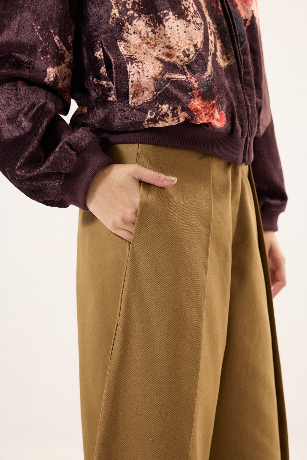 Tailored in a warm tan hue, these dyed twill pants are designed with refined front pleats that lend structure and effortless ease to the silhouette. Crafted for comfort and versatility, they feature two functional side pockets and a fluid fall. A timeless wardrobe essential, perfect for elevating everyday dressing with understated sophistication.