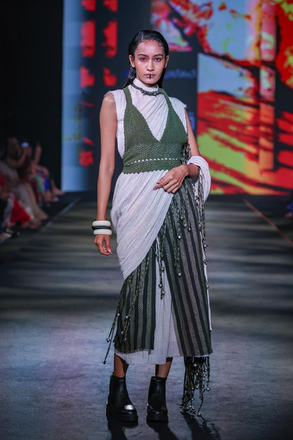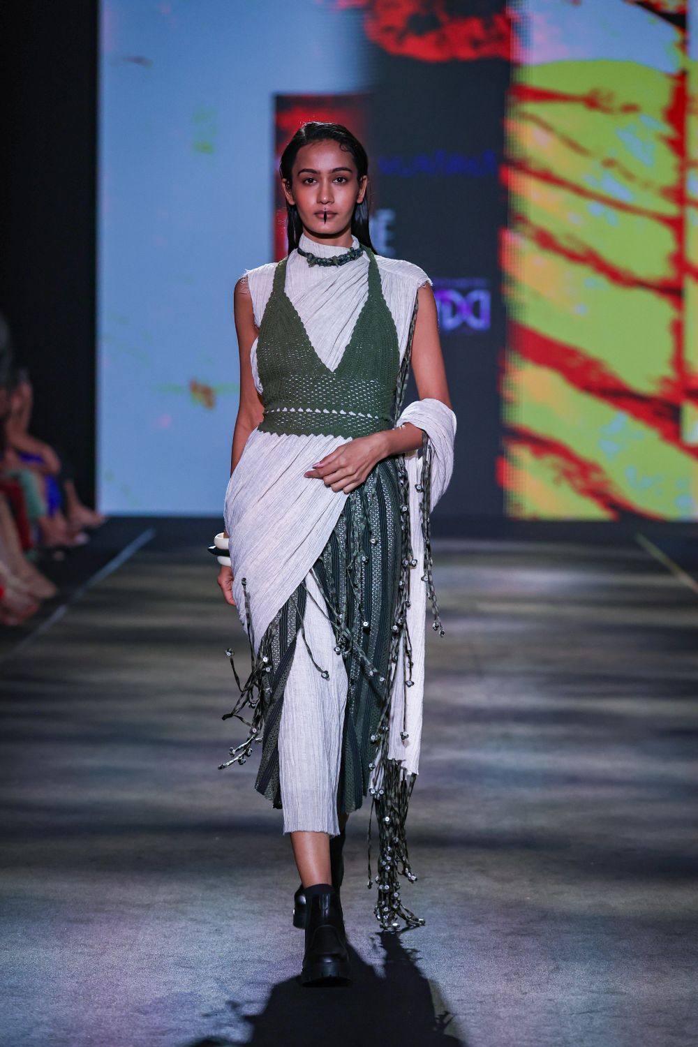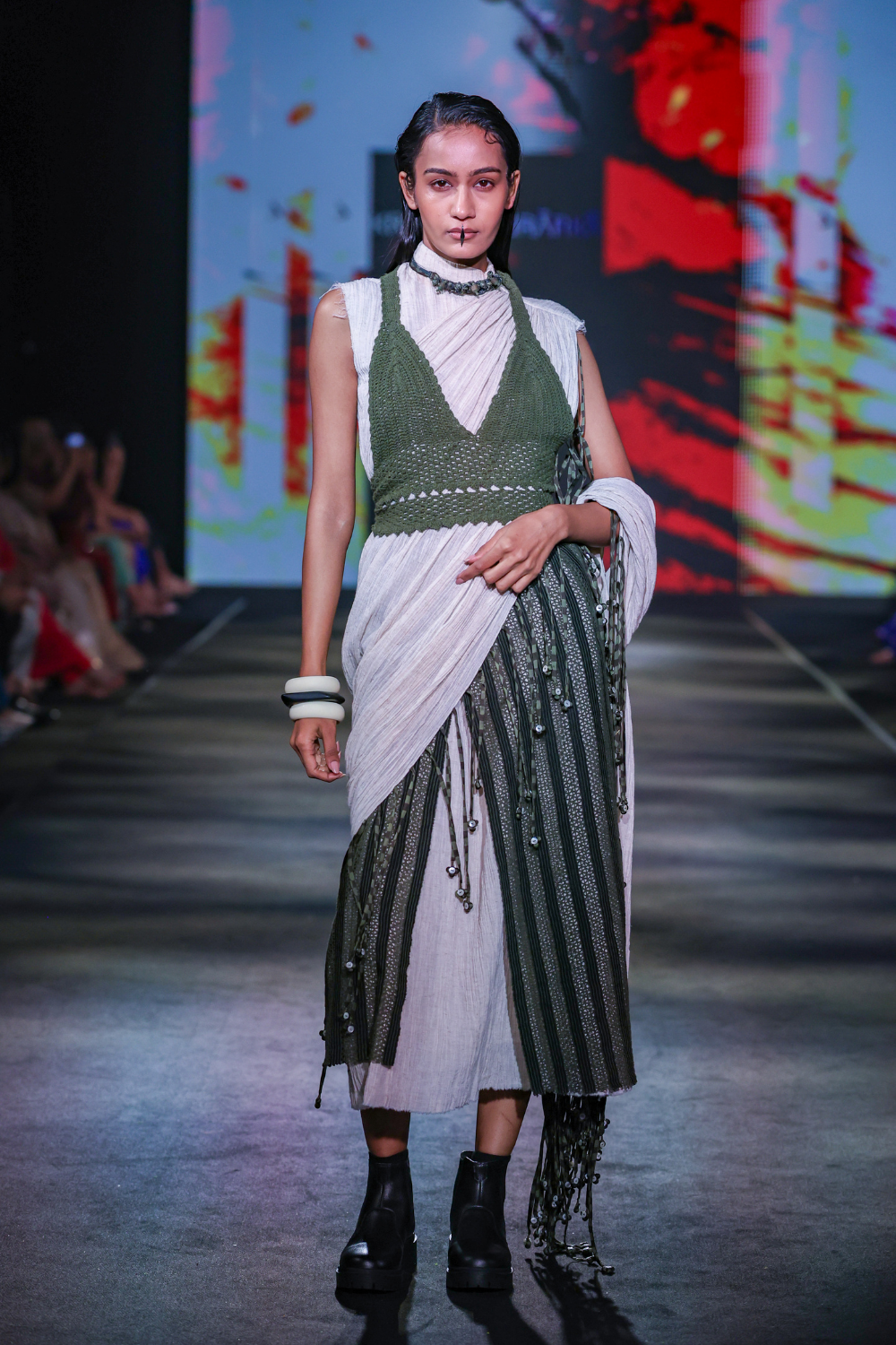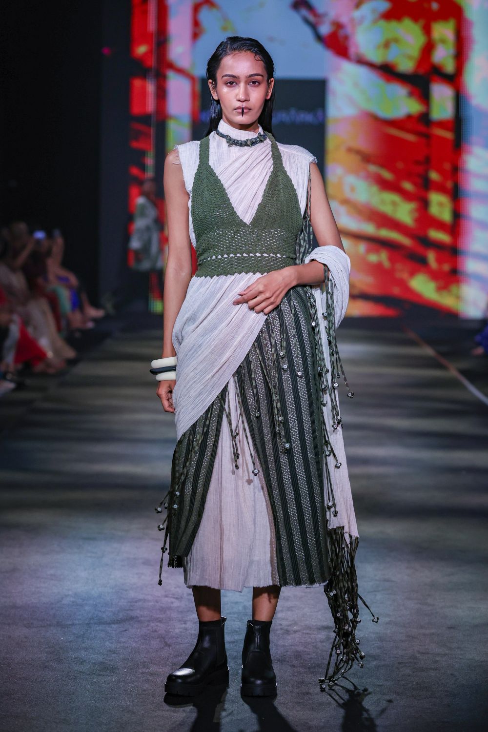 A statement handcrafted piece, the Crochet Bralette is detailed with delicate olive- print tie-up chords and tactile round ball edges for an artisanal finish. The soft cotton crochet texture ensures comfort and structure, while intricate handwork reflects premium craftsmanship. Designed for versatile styling, pair it with wide trousers, drape skirts, or layered under capes for a bold resort or festive look. Ideal for summer, beachwear, or artistic evenings, it embodies effortless luxury and handcrafted charm.