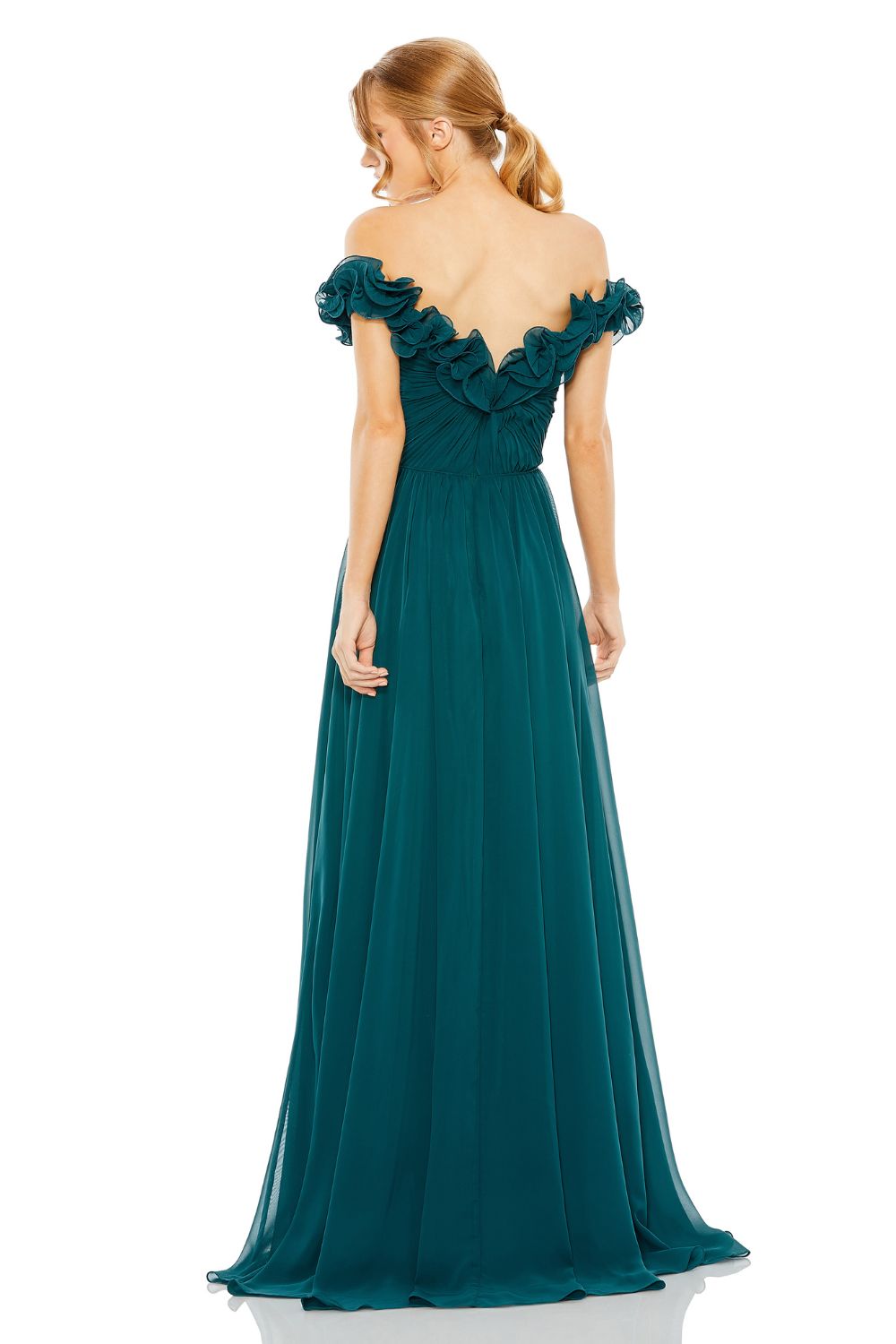 11591-Ruched Off The Shoulder A Line Gown