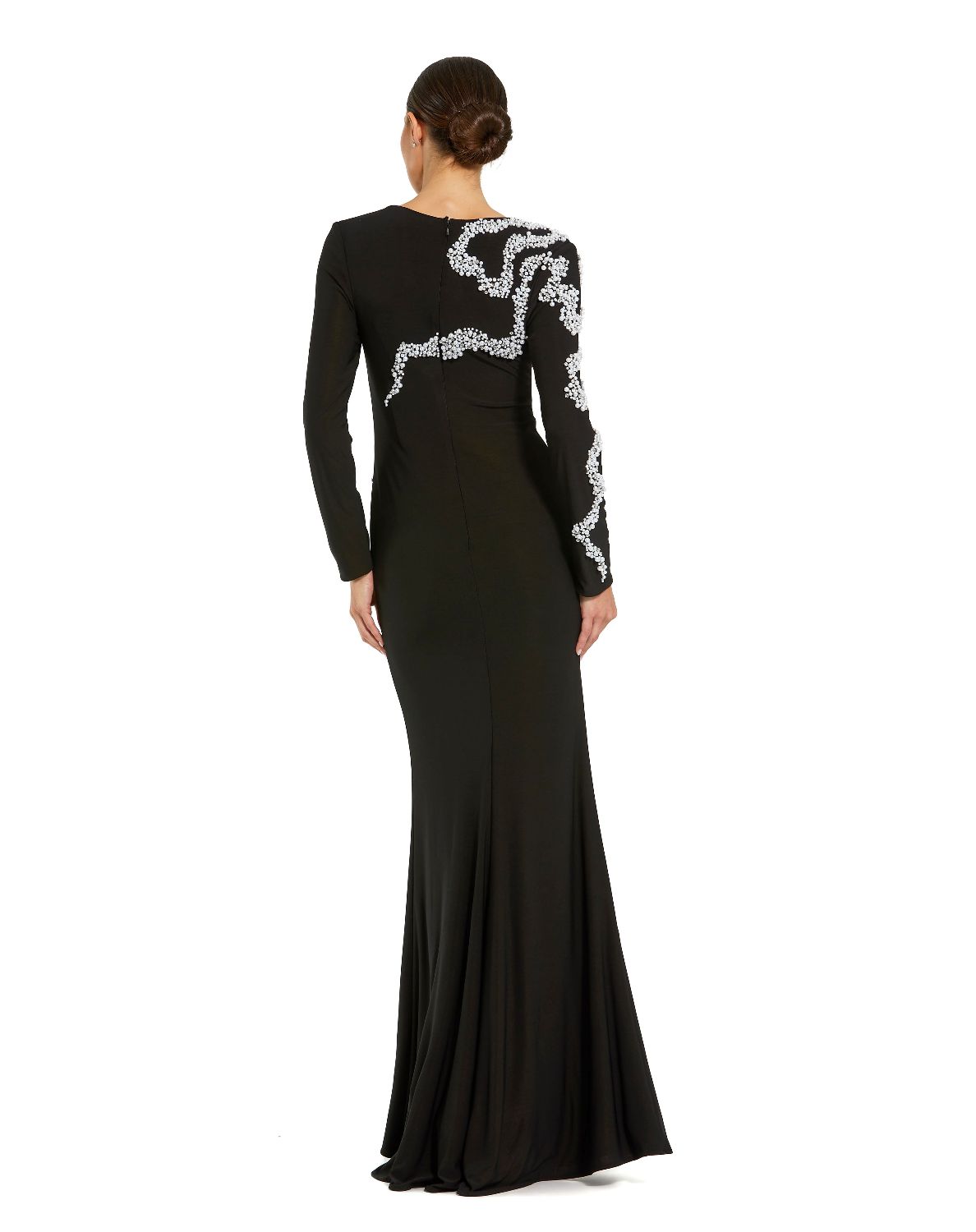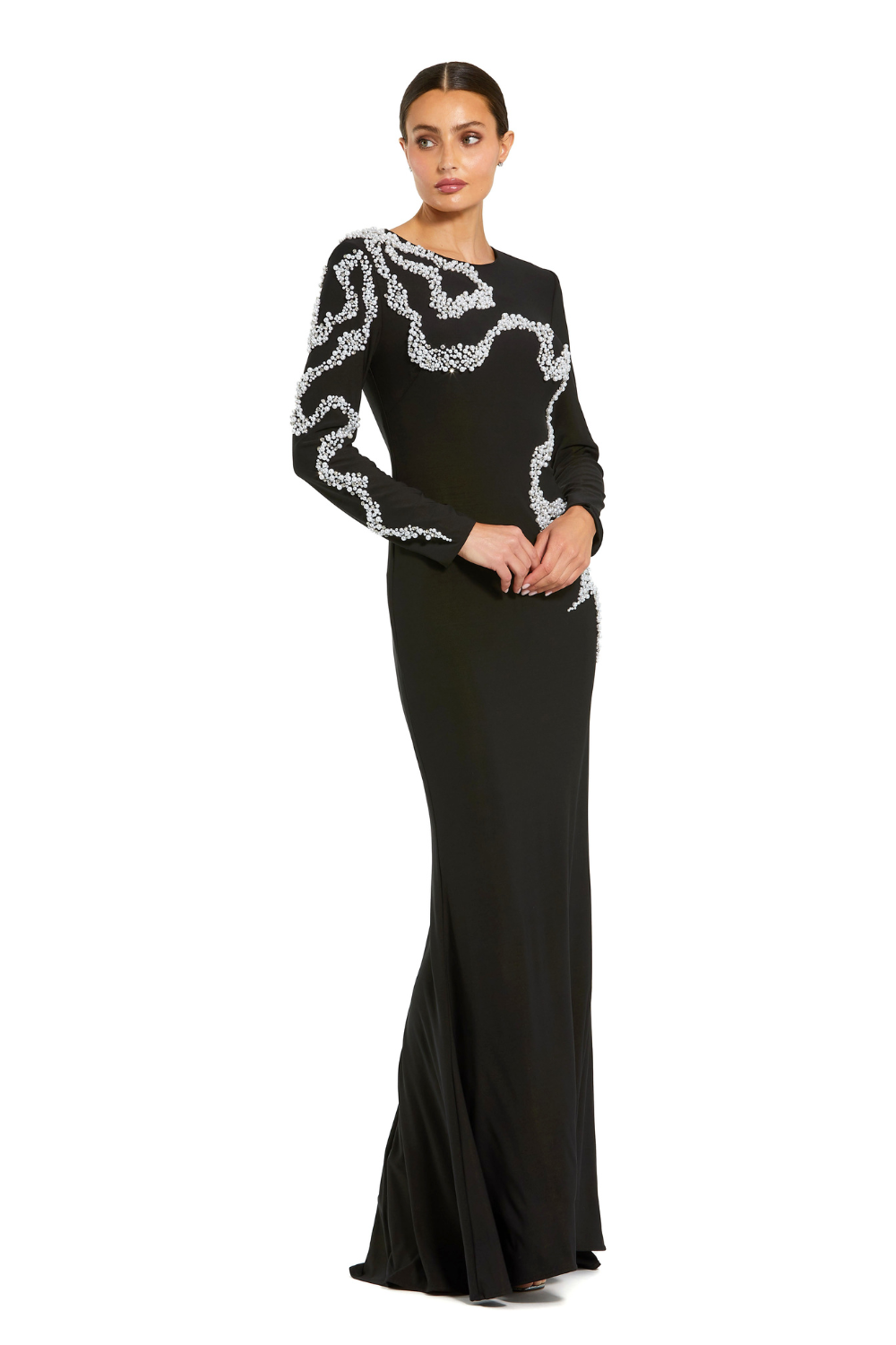 Long sleeves with pearl and rhinestone swirl detailing