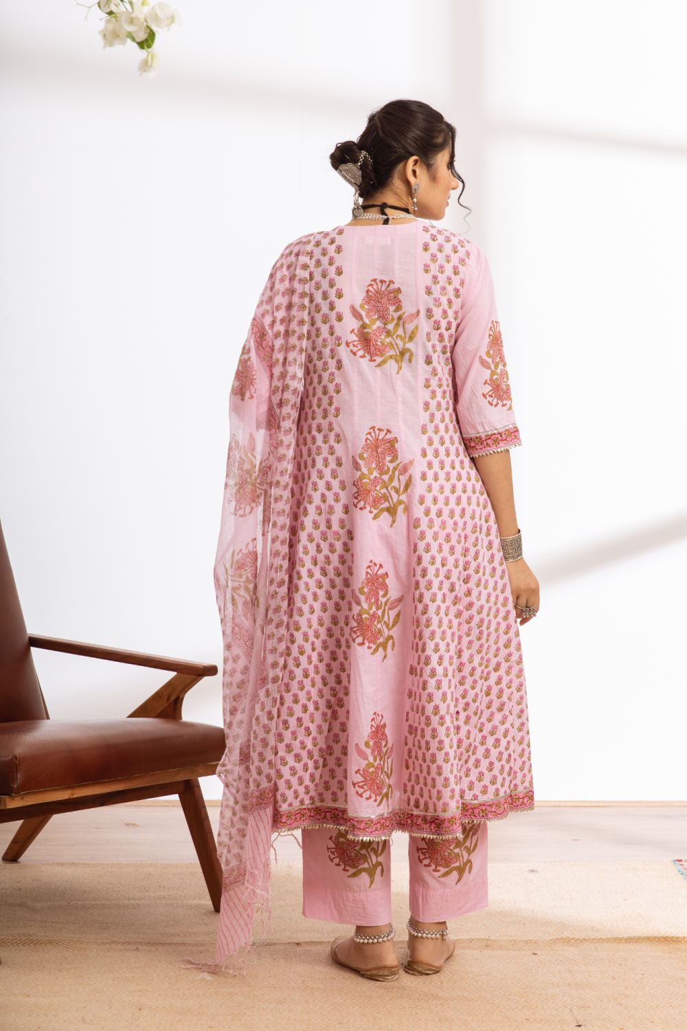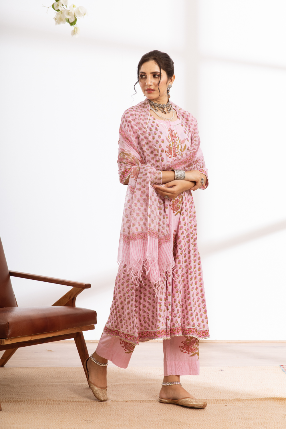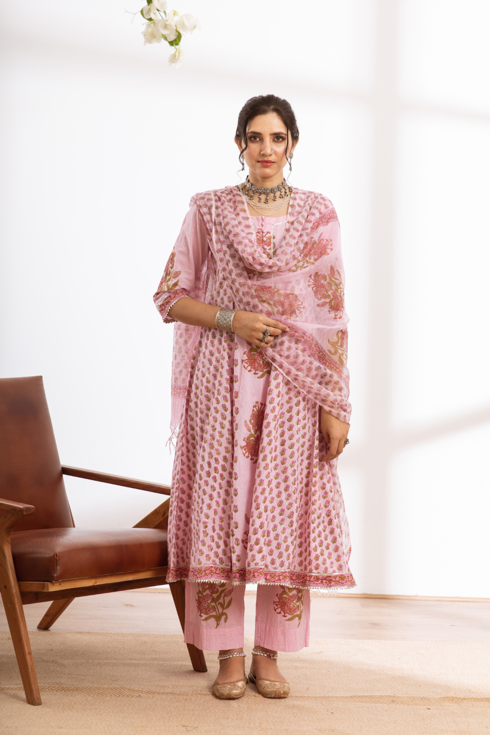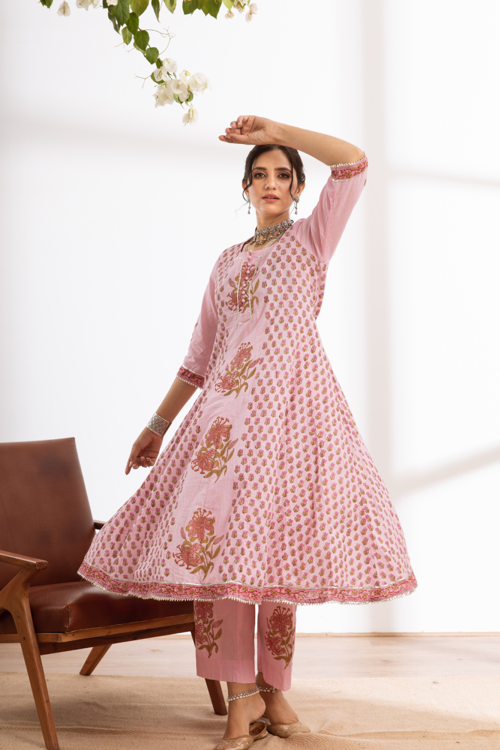 Rasika Gulabi Kalidar Set - pink hand block printed cotton kalidar set