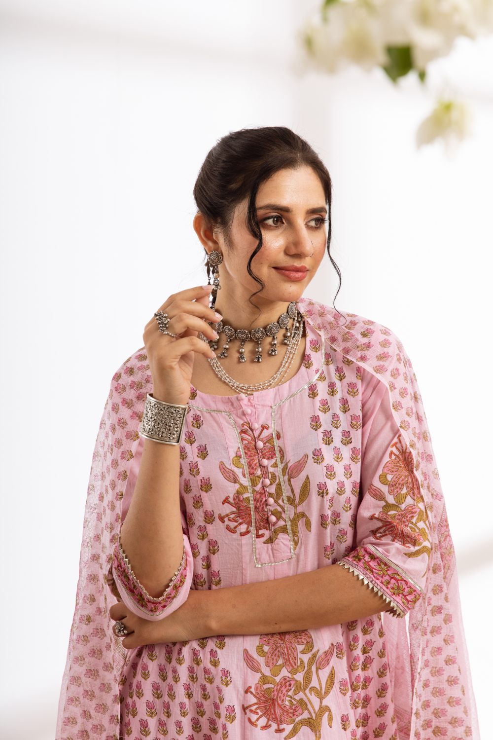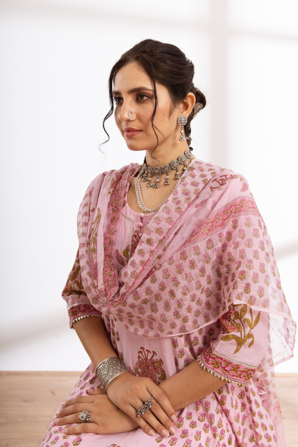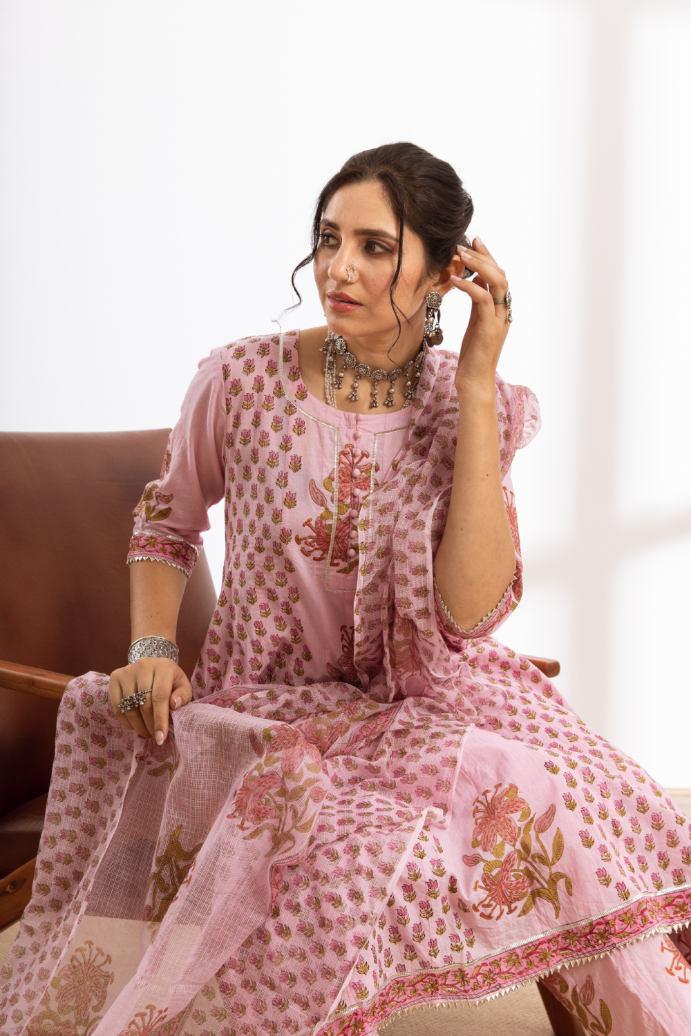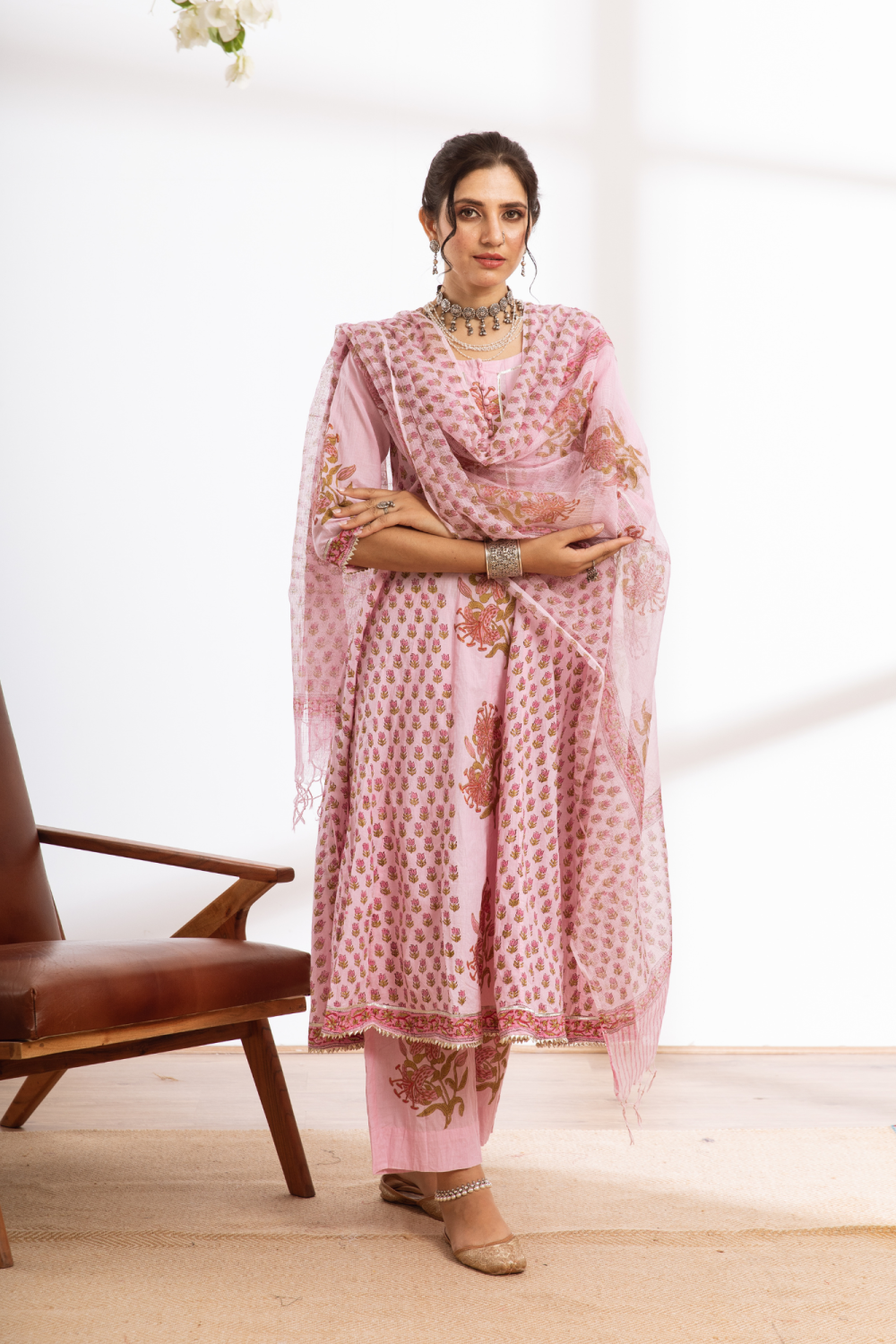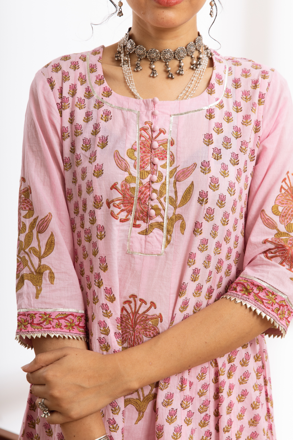 Rasika Gulabi Kalidar Set - pink hand block printed cotton kalidar set