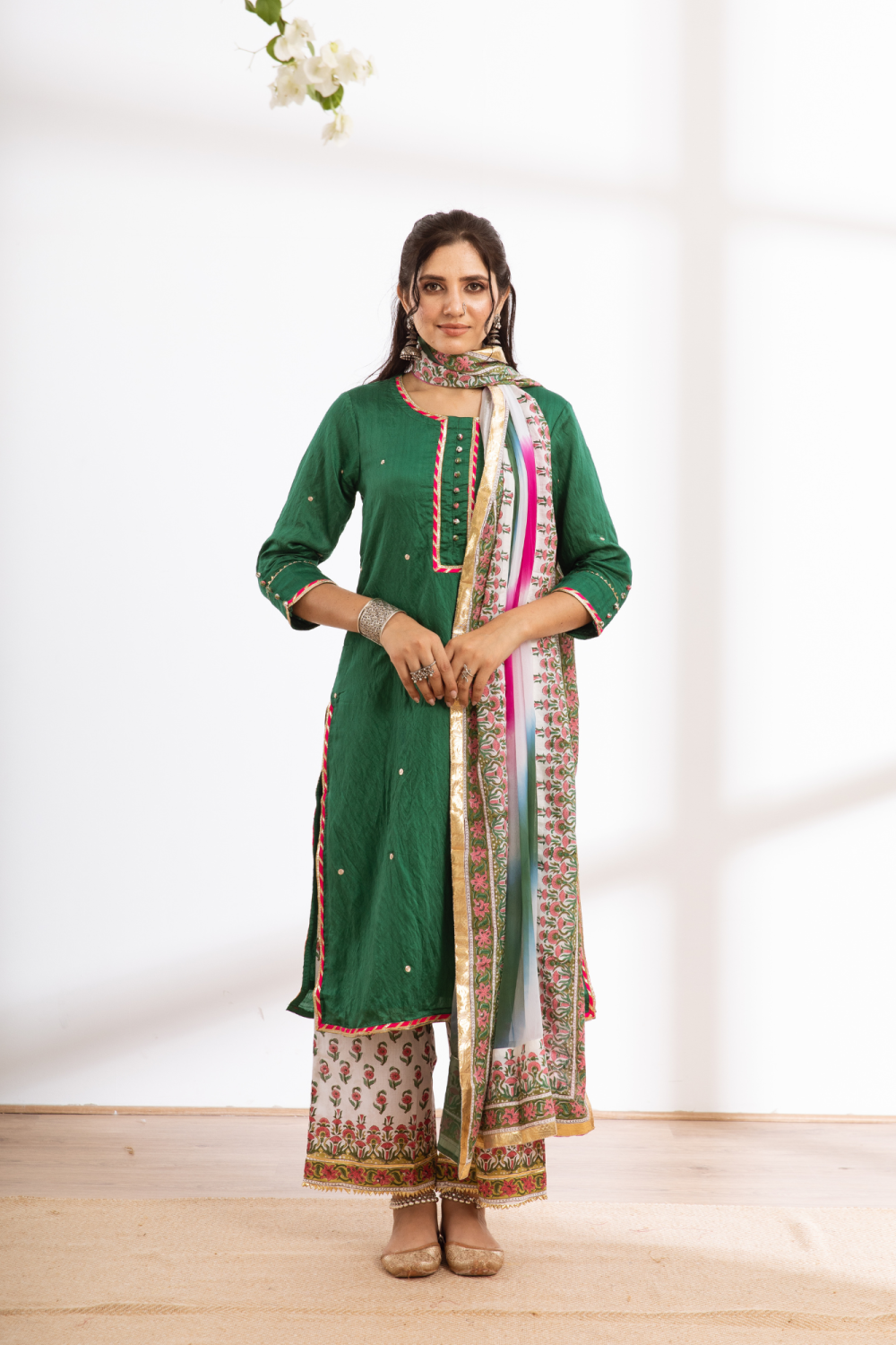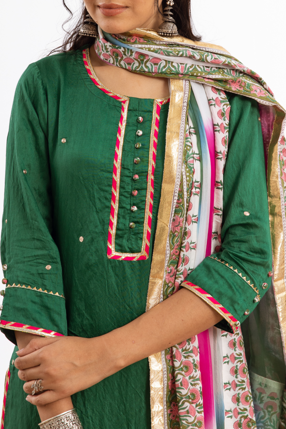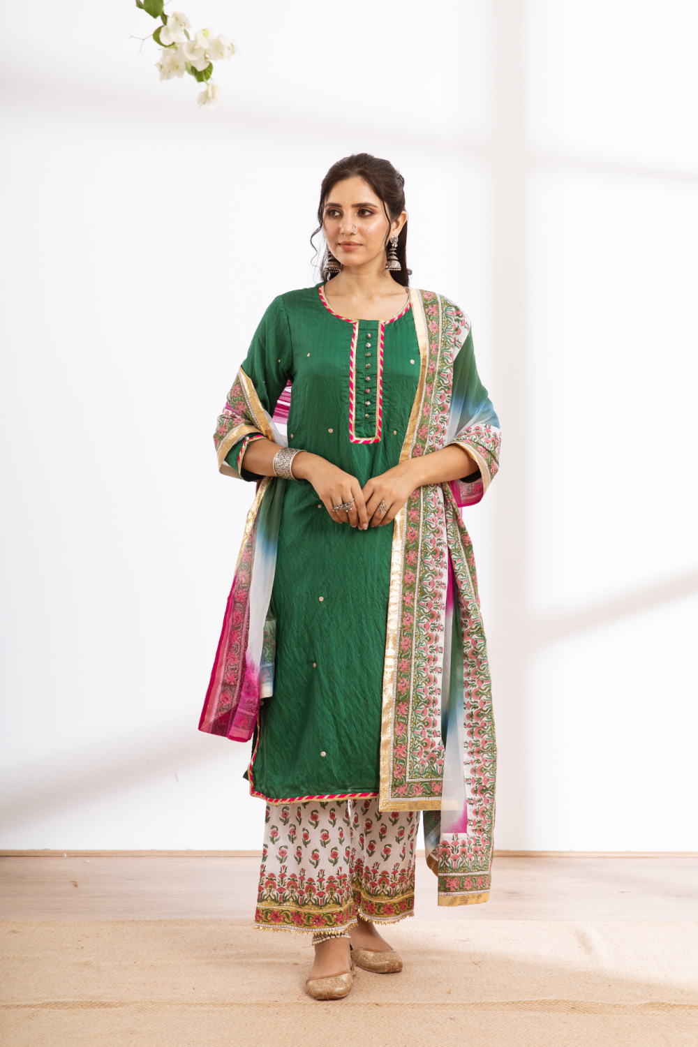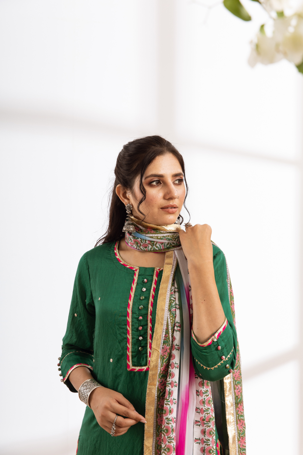Kurta - Chanderi, Sharara - Cotton, Dupatta - Chiffon
