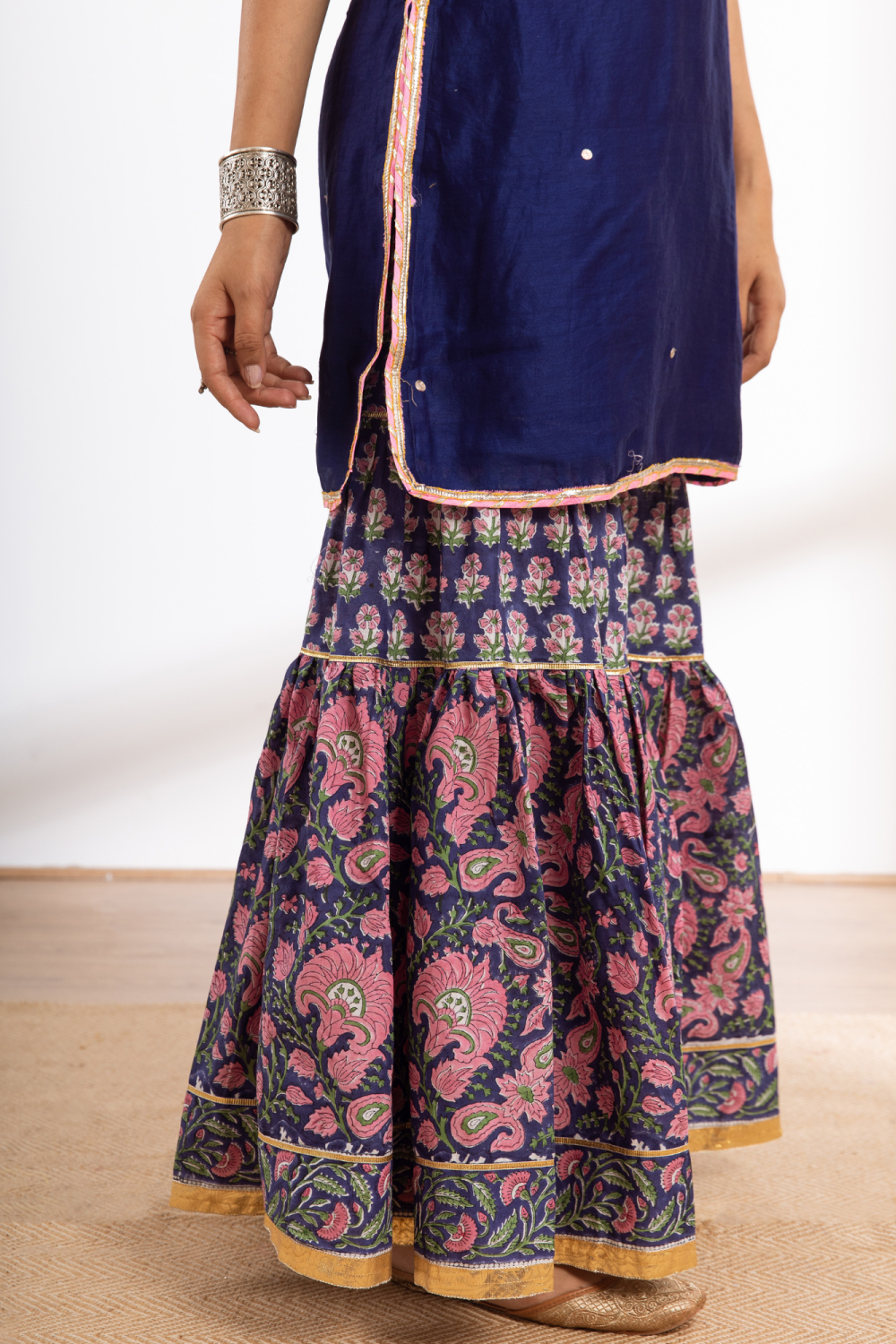 Sharara - tiered sharara with hand printed jaal and boot