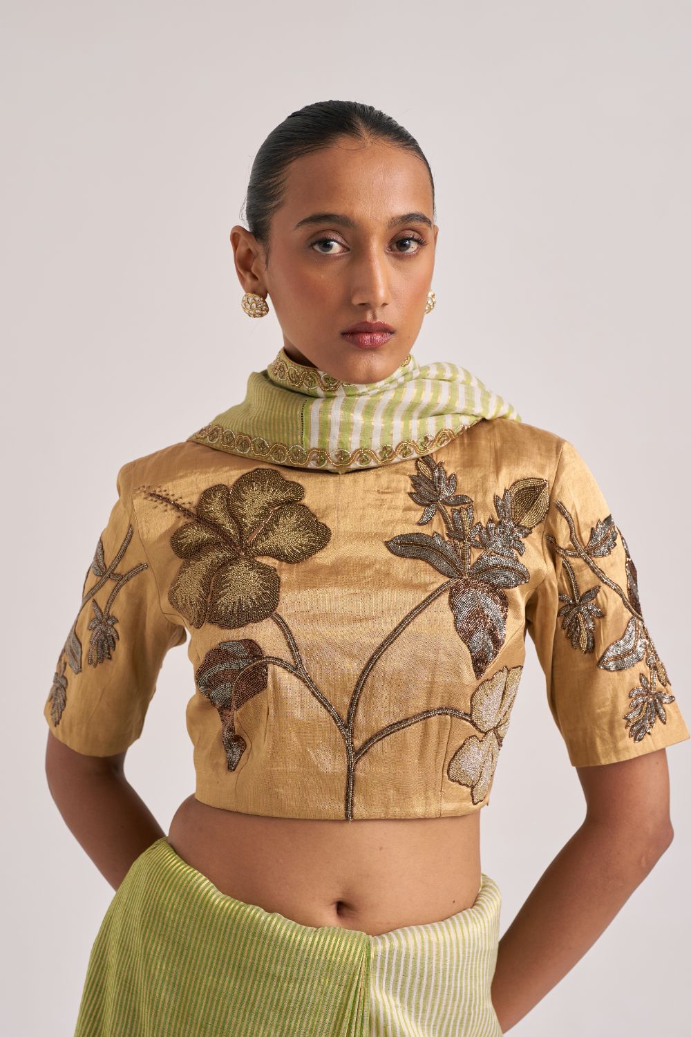 Blouse Is Detailed With Intricate Glass Bead Hand Em-