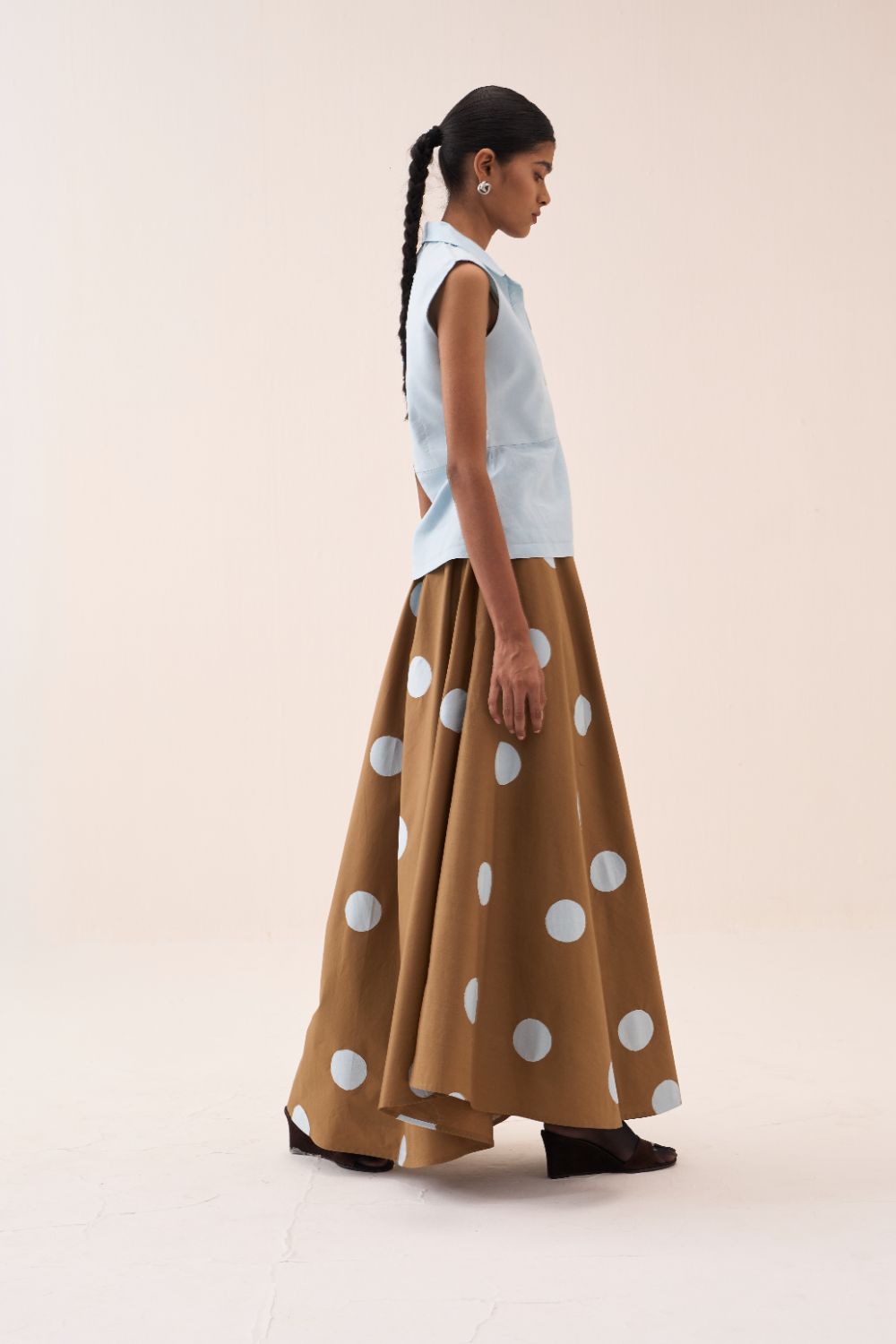 Clever cuts, asymmetric patterns, a neutral palette and simplicity of geometric details form the core aesthetic of the brand. Their love for asymmetry and imperfection clearly reflects in their silhouettes and hemlines. The label is a modern mix of conceptual and wearable clothing which defies age bar as the ensembles exude comfort, more so with their signature anti-fit coords.