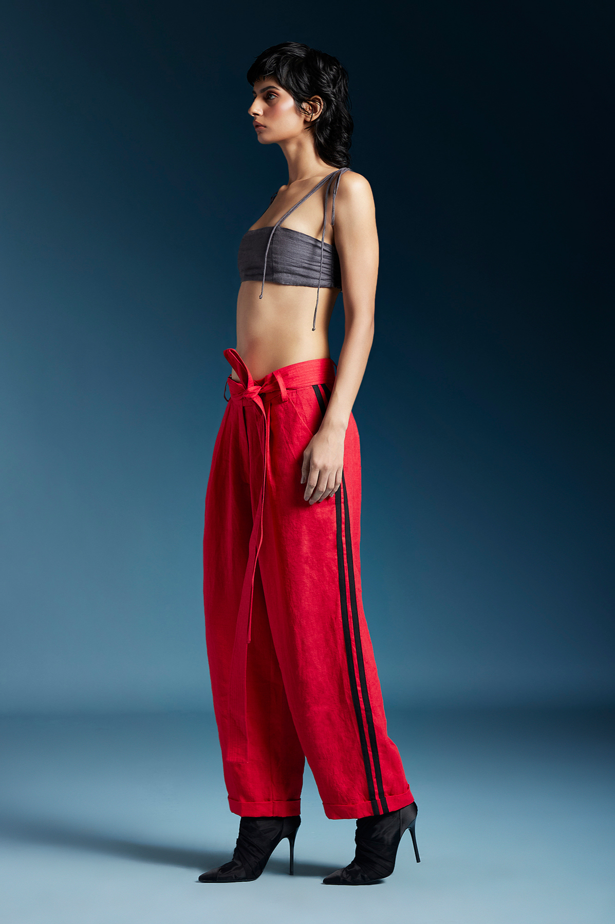 Chola’s universe begins with thoughtful materials. Recycled cottons, post-consumer fabrics, and free-cutting techniques come together in a kind of mindful choreography—one that honours form without creating waste, and prioritises movement over rigidity. This is clothing that feels lived-in yet architectural; pared-back yet quietly avant-garde.