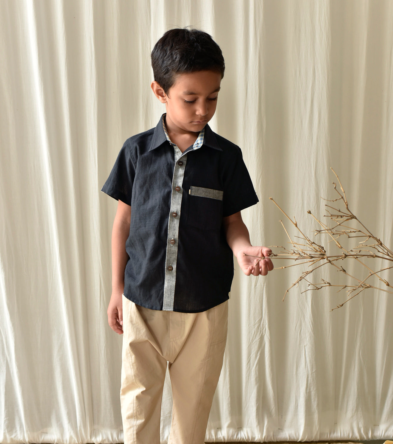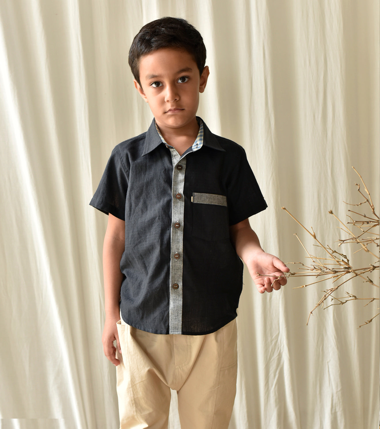 A charcol black coloured shirt with band detailing for a perfect and rest free day.