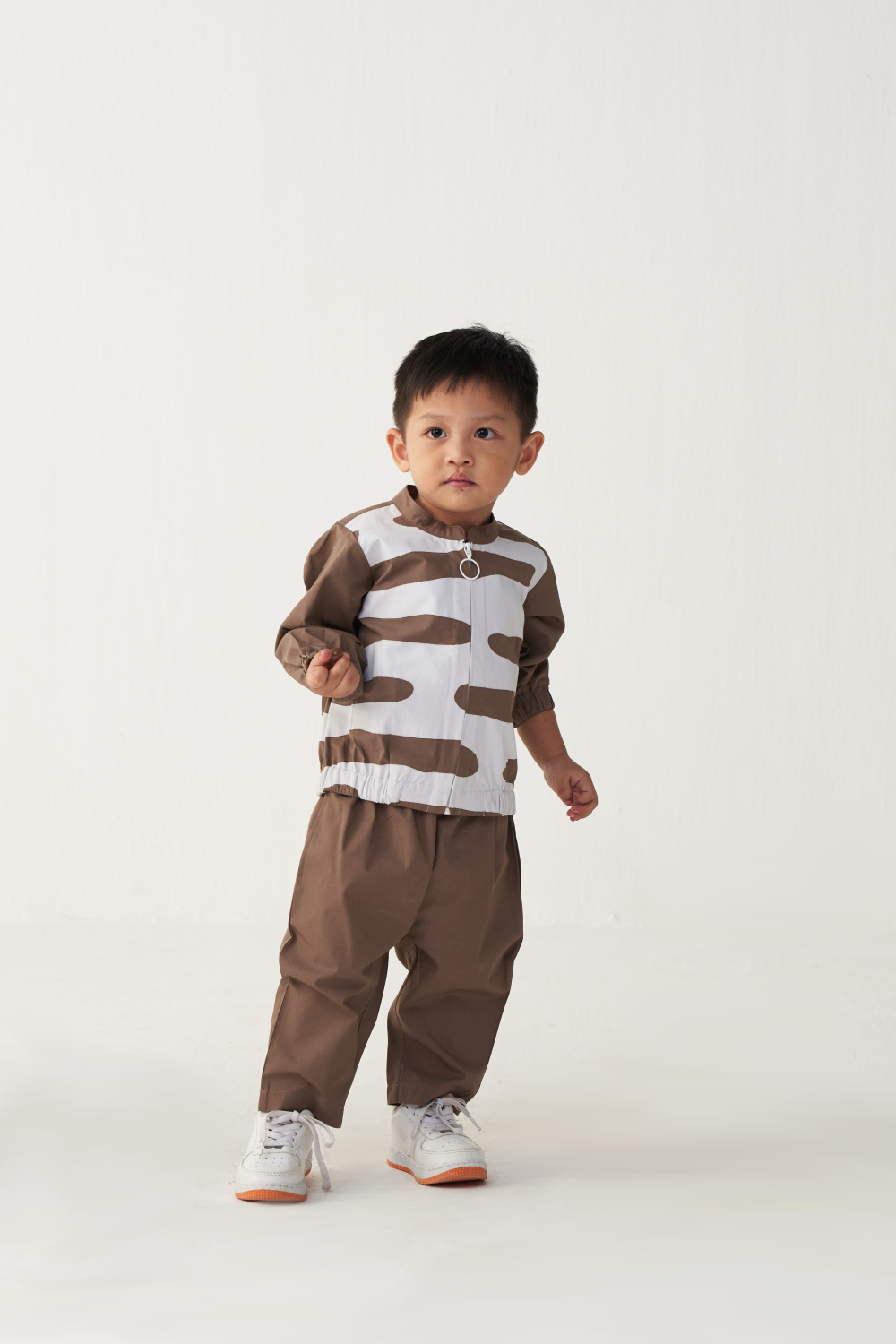 KIDS ABSTRACT BOMBER JACKET CO-ORD-CEDAR & WHITE