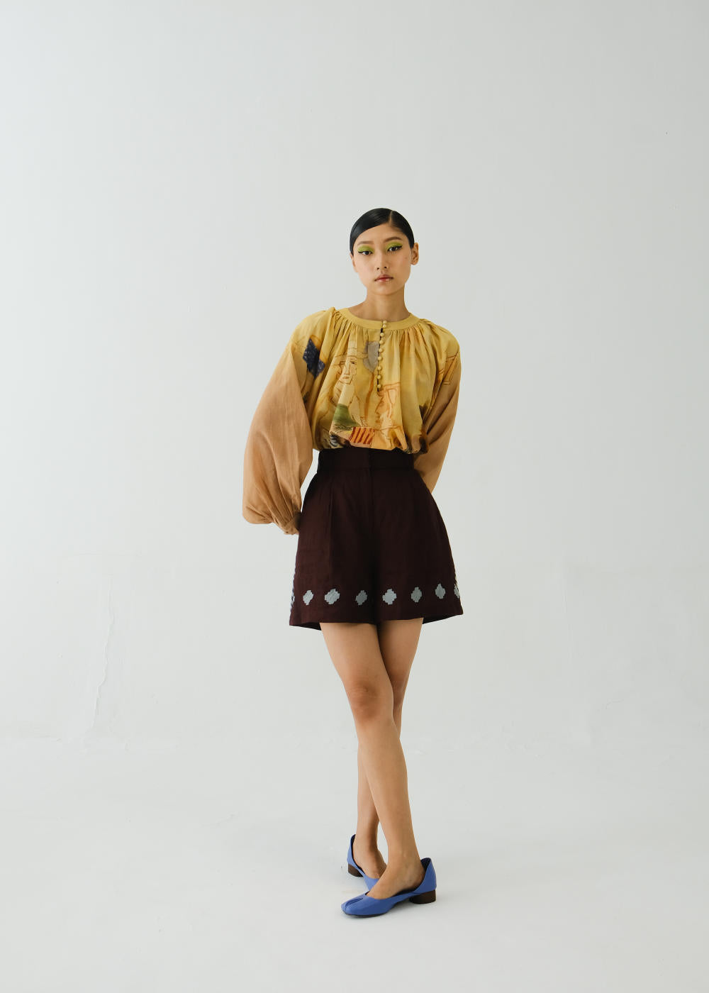 CORD blurs the line between art and attire in a way few labels dare to. Here, fabrics become canvases; illustrations—drawn by hand, steeped in imagination—flow across silhouettes that feel sculptural yet deeply wearable. Each piece has a texture of memory to it, as if it carries echoes of a past life, now reframed for a contemporary world.