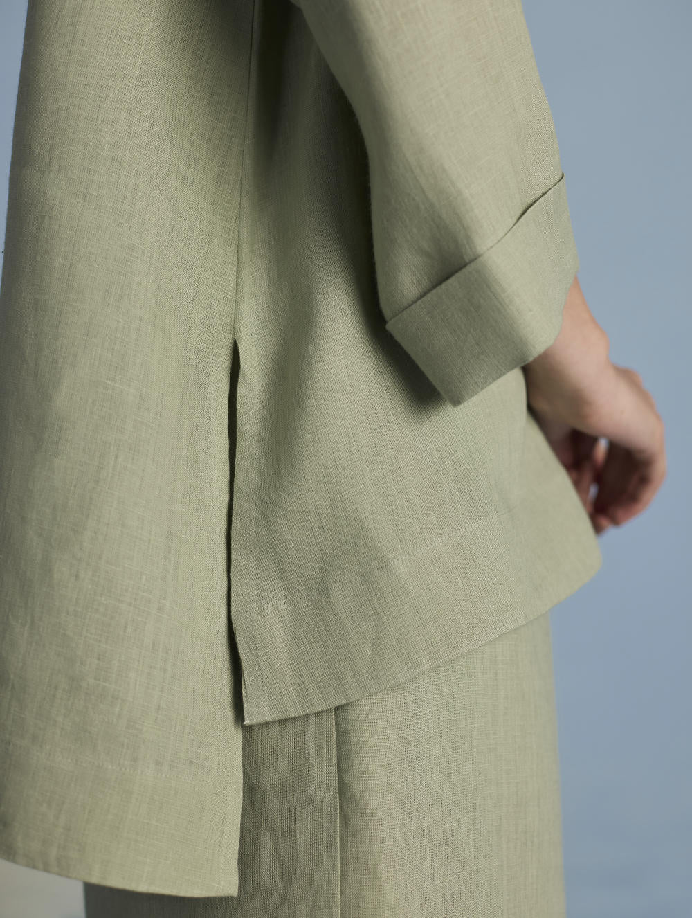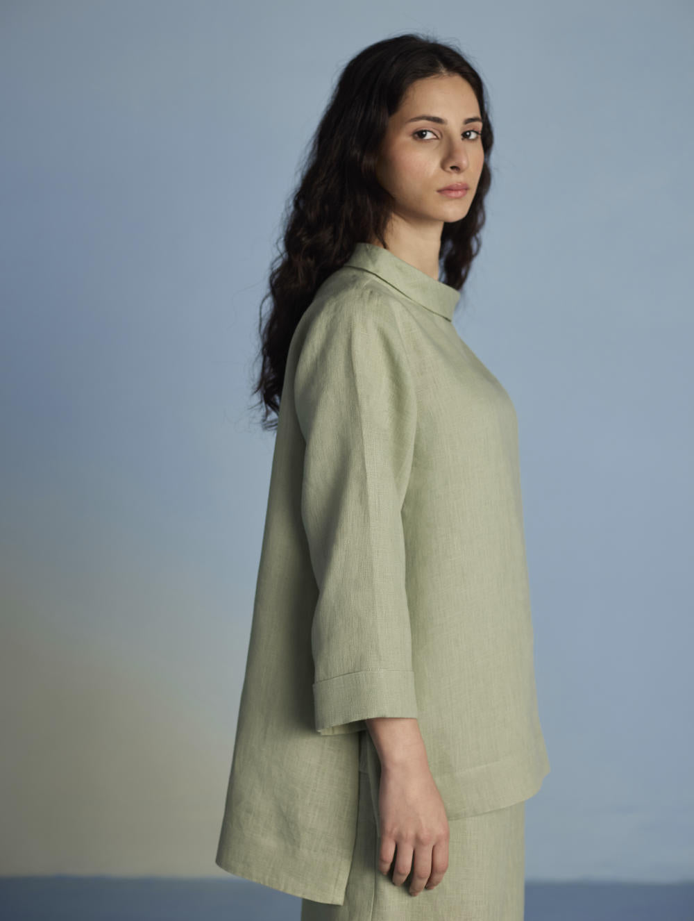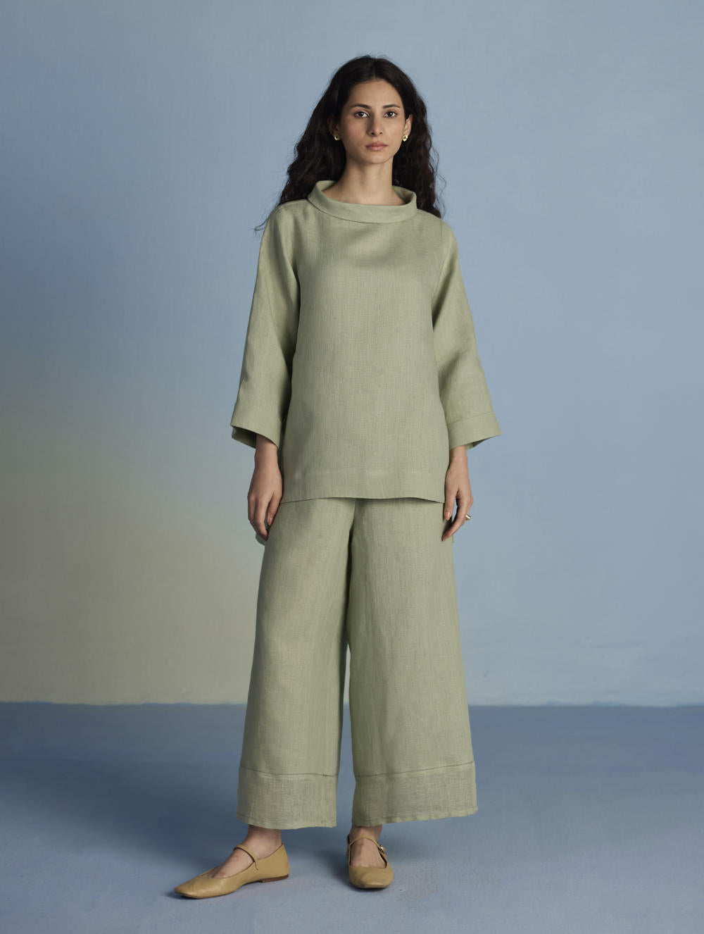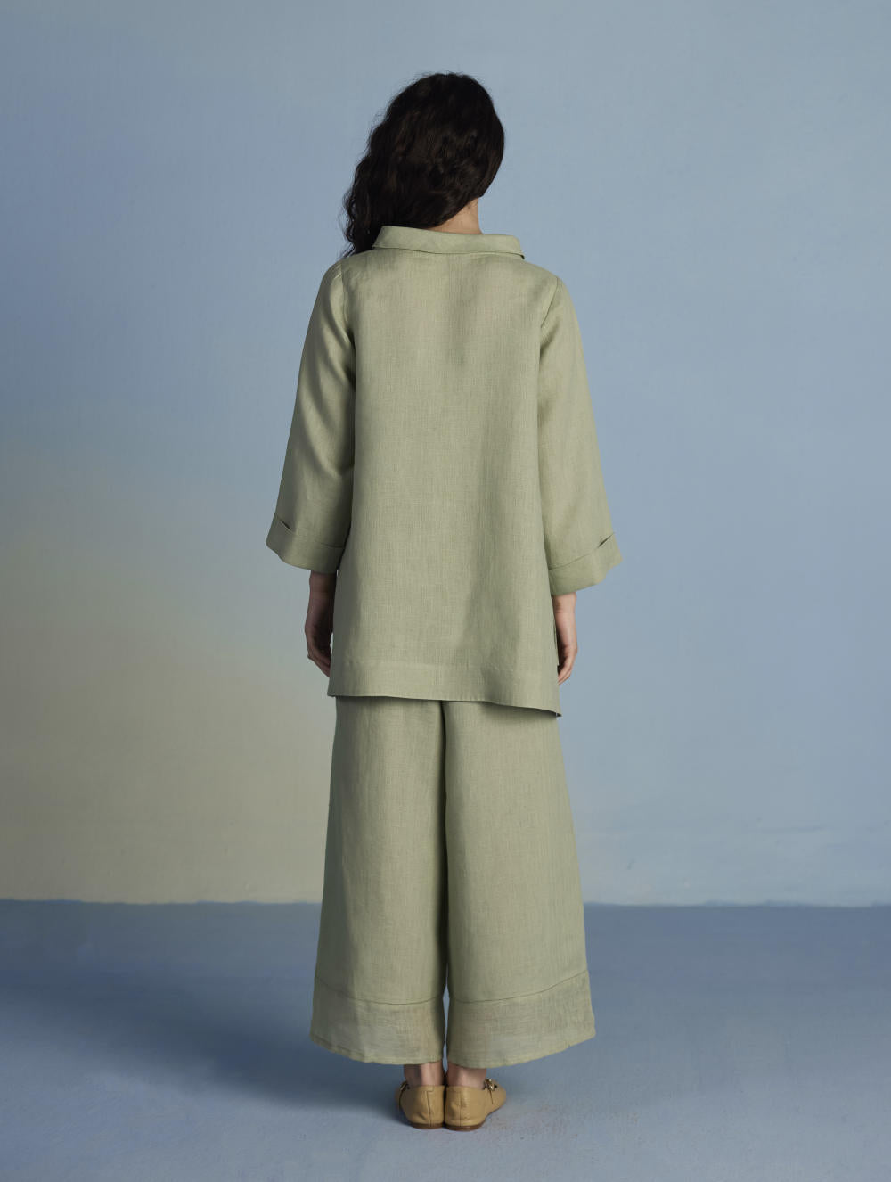 Their signature linens soften beautifully with time, eventually returning to the earth. They work with eri (ahimsa) silk, celebrated for its strength and gentle texture, and craft thoughtful blends of viscose, cotton, silk, and linen for pieces designed to last. Yarn-dyed techniques minimise chemical use and create the subtle, heathered tones that have become a quiet Manan signature.