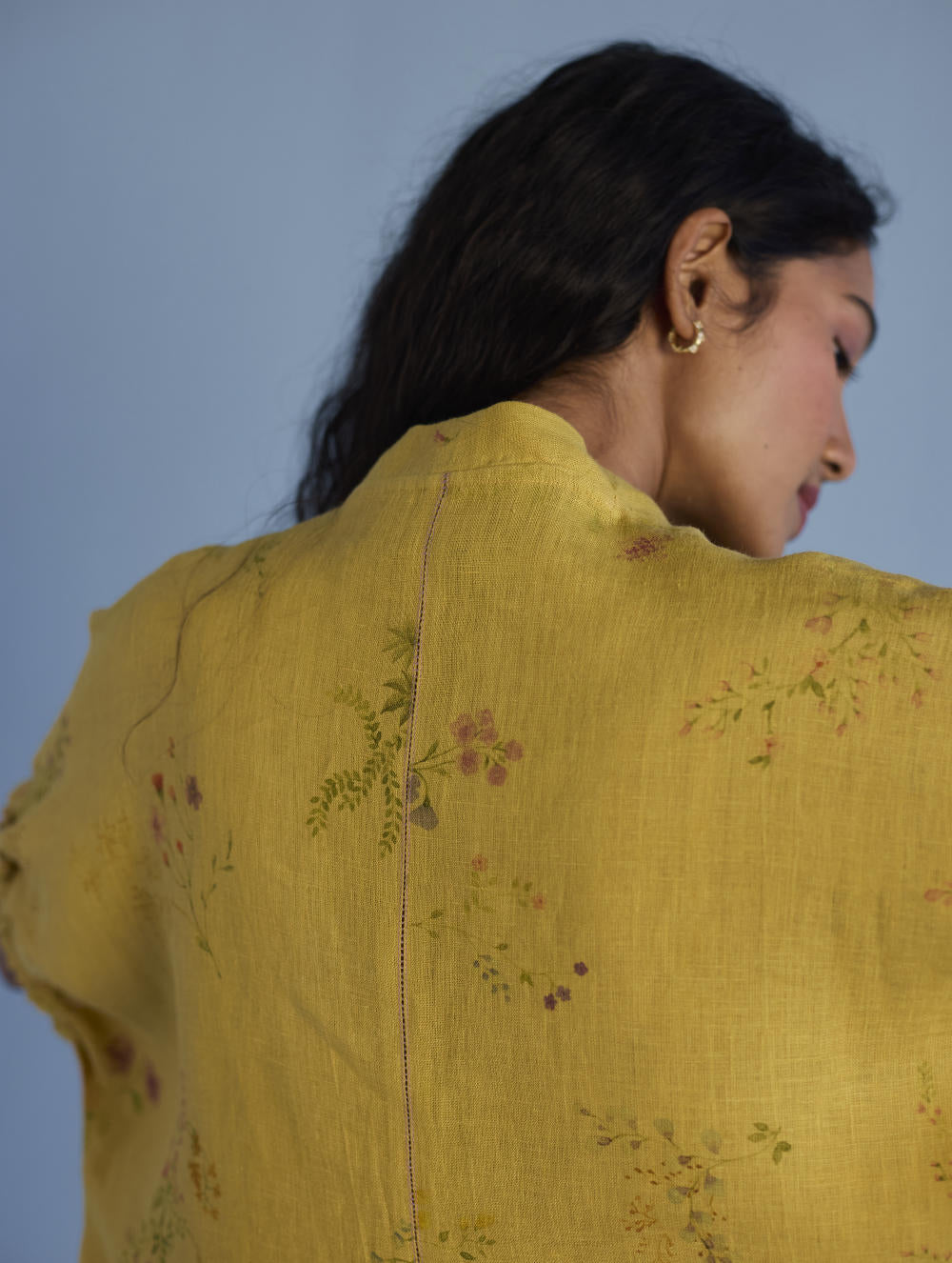 Their signature linens soften beautifully with time, eventually returning to the earth. They work with eri (ahimsa) silk, celebrated for its strength and gentle texture, and craft thoughtful blends of viscose, cotton, silk, and linen for pieces designed to last. Yarn-dyed techniques minimise chemical use and create the subtle, heathered tones that have become a quiet Manan signature.
