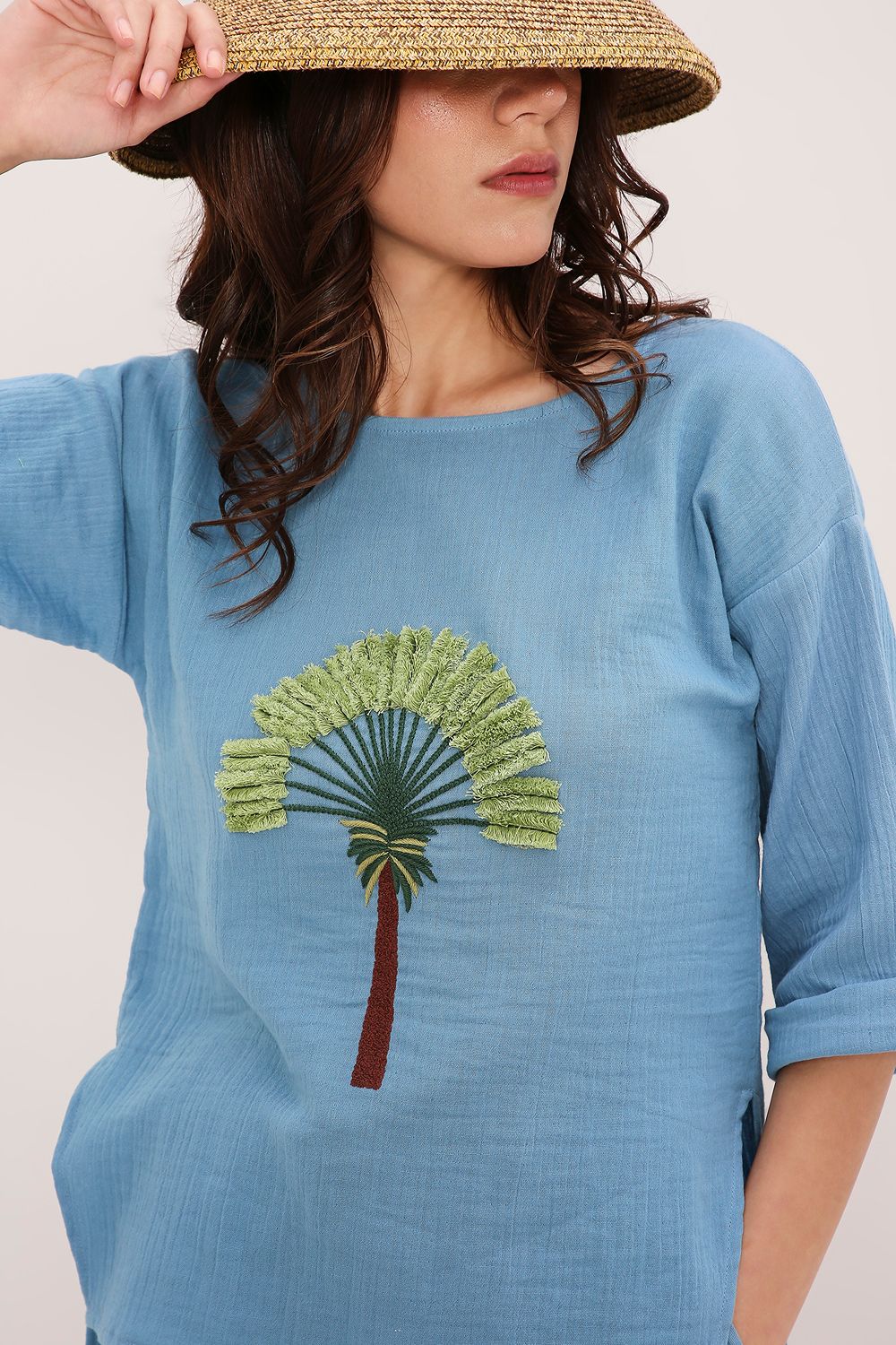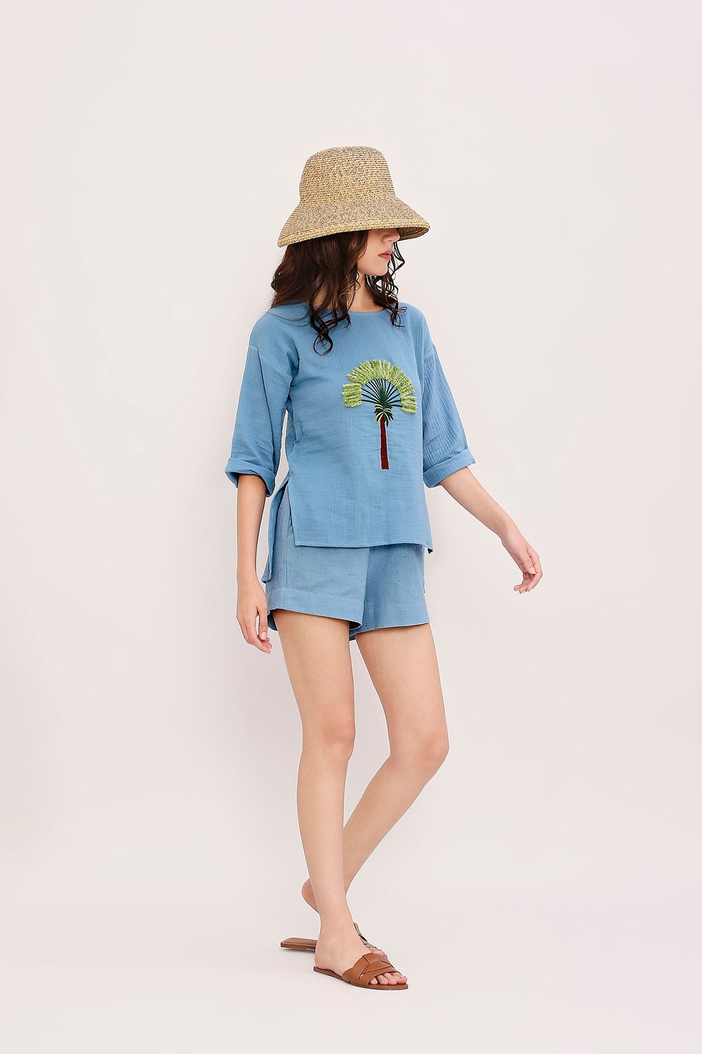Coco Blue Embroidered Top & Shorts Set (2 PCS)