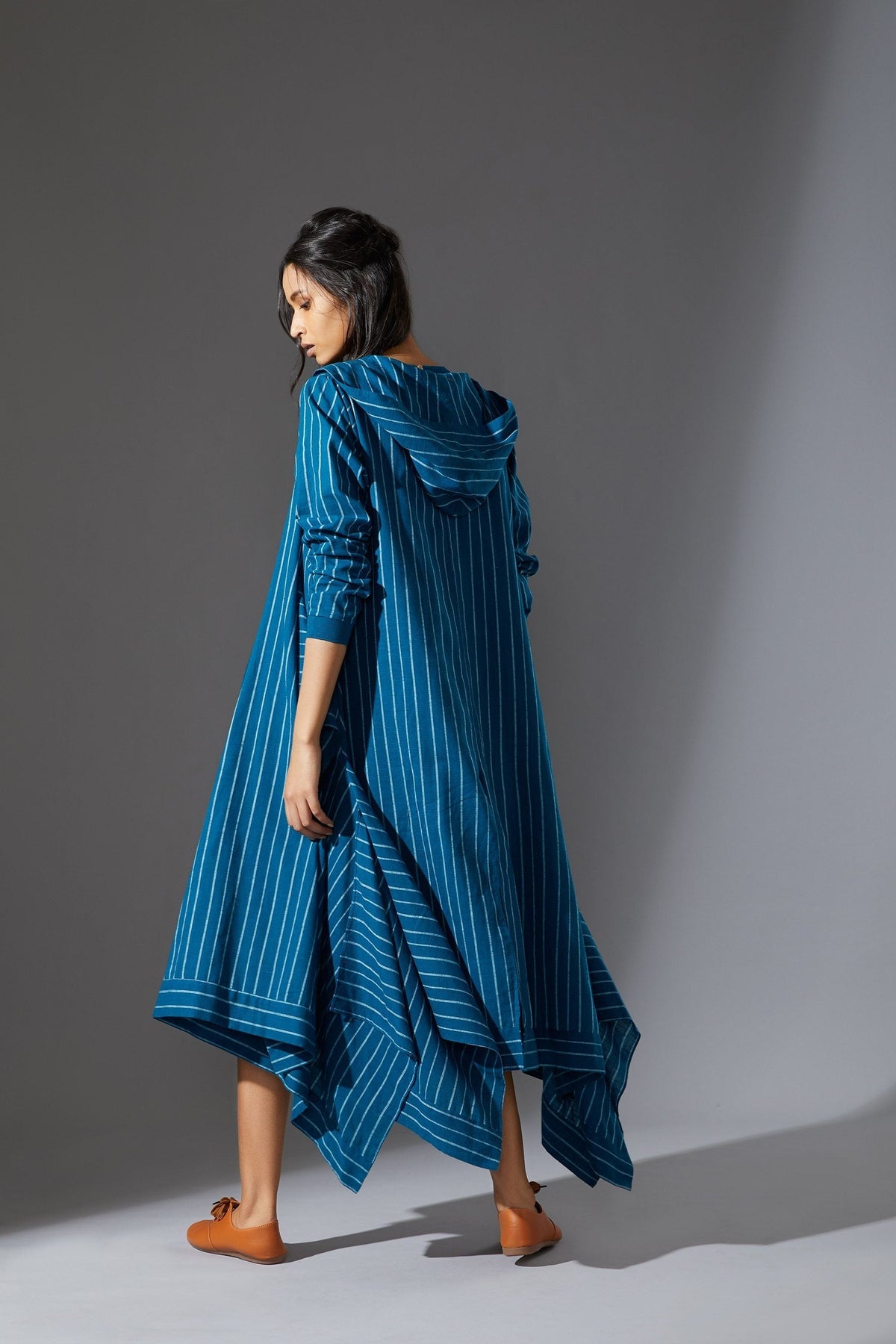 Since all pieces are individually handmade and tailored in my studio, each garment is unique and one off. Therefore, please expect subtle differences in color and form.