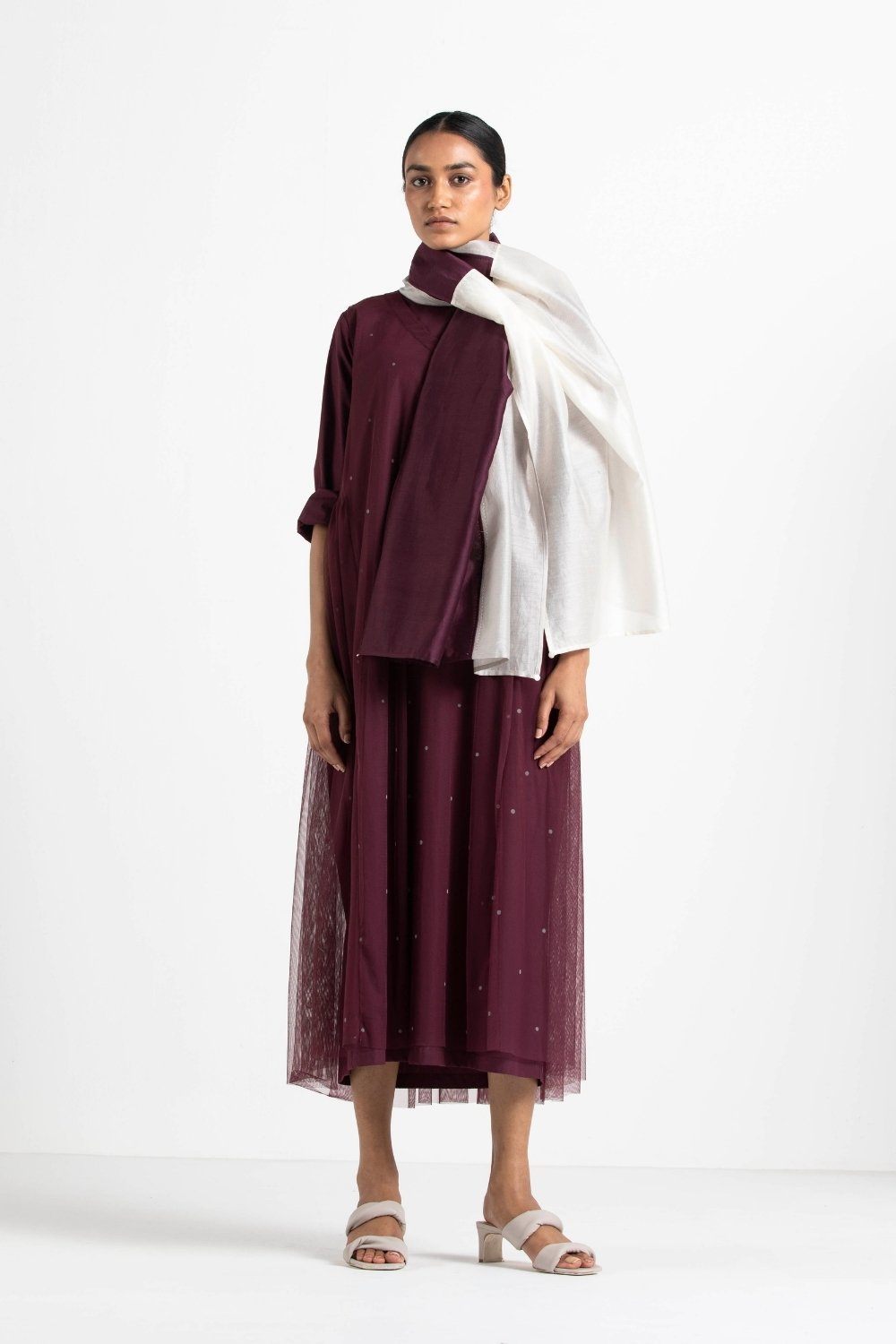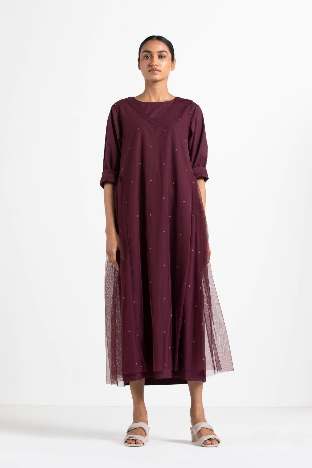 Side Gather Overdress Co-ord Wine Polka (Set of 3) Fashion THREE