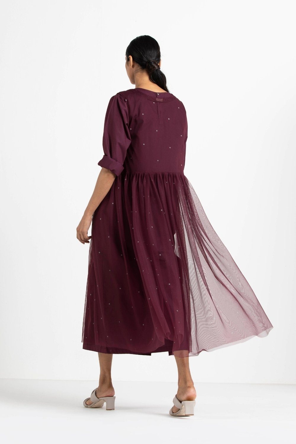 Side Gather Overdress Co-ord Wine Polka (Set of 3)