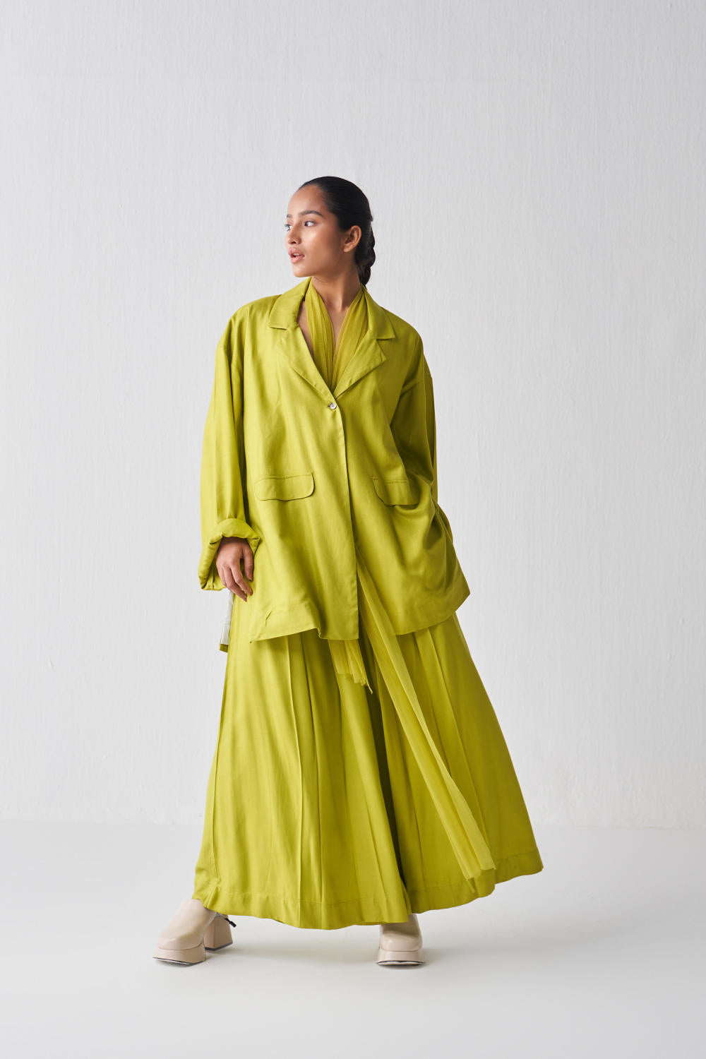 WIDE SLEEVE JACKET CO-ORD-LIME