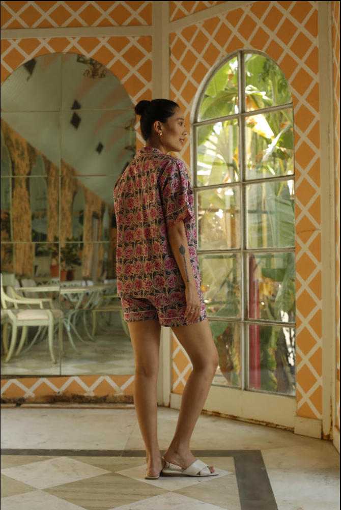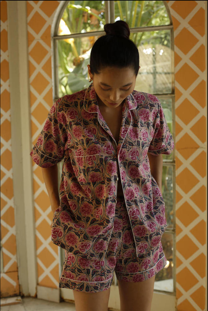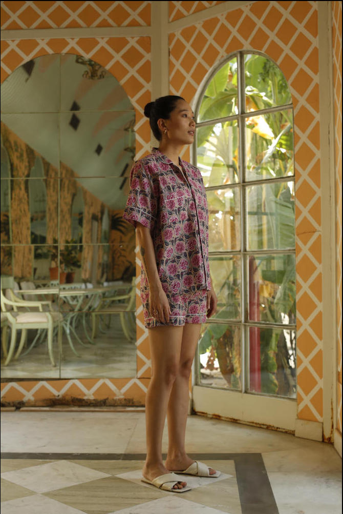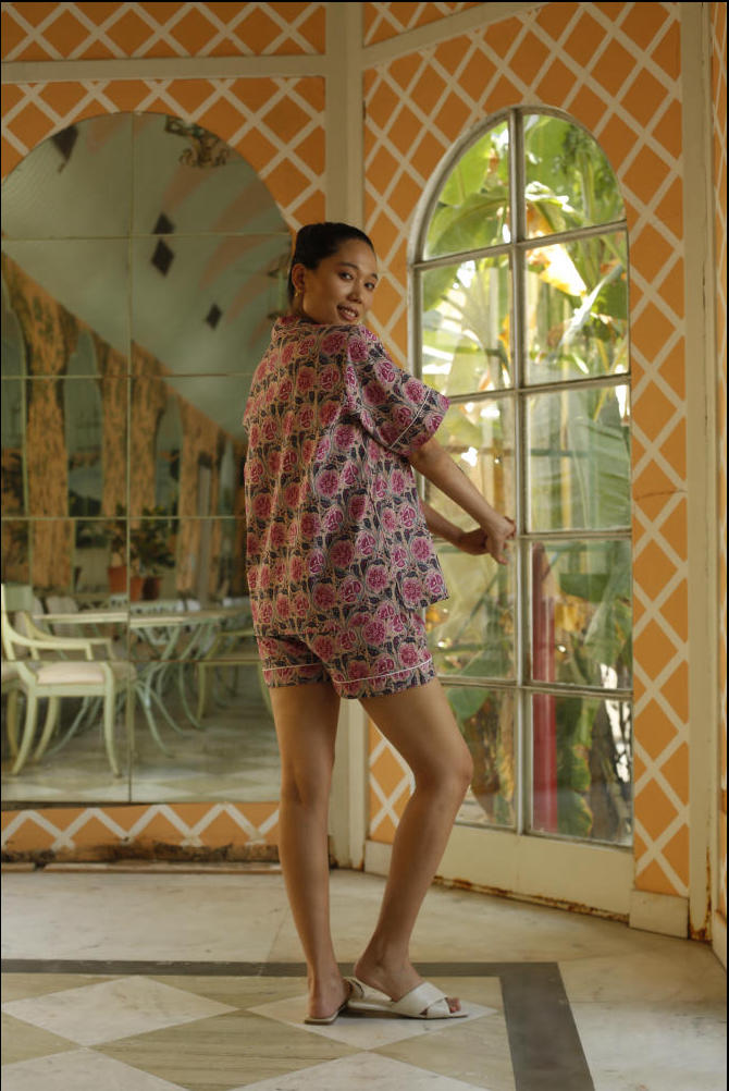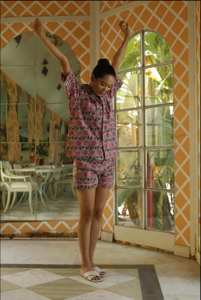 “Hand printed pajama set ,in cotton mulmul with front mother of