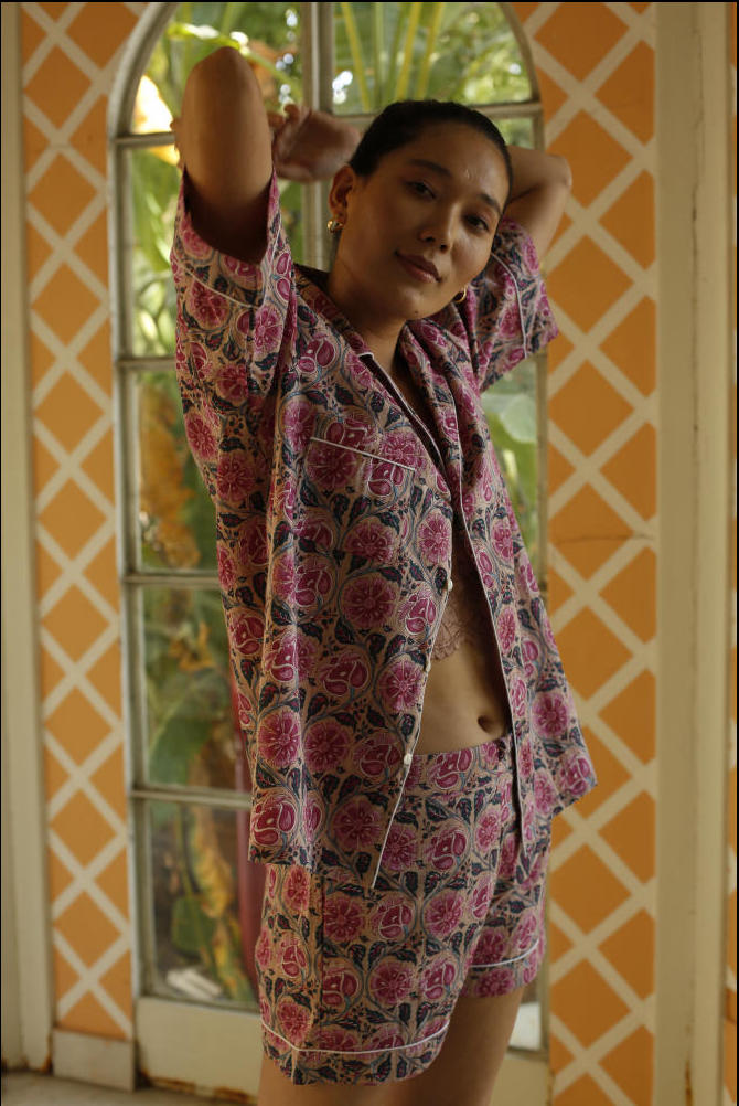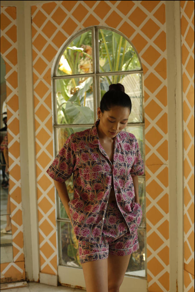 The silhouettes are simple but considered: relaxed cuts, thoughtful details, and fabrics that breathe — from handwoven cottons to delicately finished textiles rooted in Rajasthan’s craft culture. Colours stay close to the earth: muted florals, soft neutrals, and tones that age gracefully rather than fall out of season.