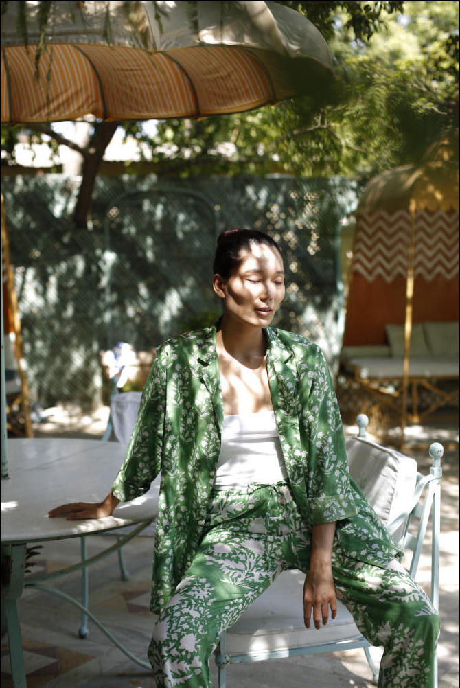The silhouettes are simple but considered: relaxed cuts, thoughtful details, and fabrics that breathe — from handwoven cottons to delicately finished textiles rooted in Rajasthan’s craft culture. Colours stay close to the earth: muted florals, soft neutrals, and tones that age gracefully rather than fall out of season.