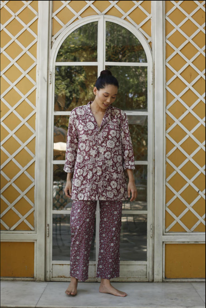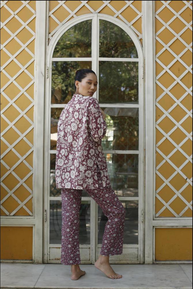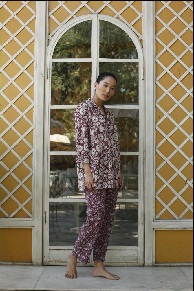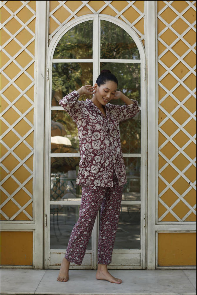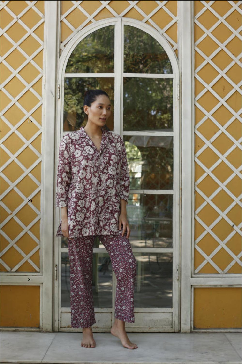 “Hand printed pajama set ,in cotton mulmul with front mother of