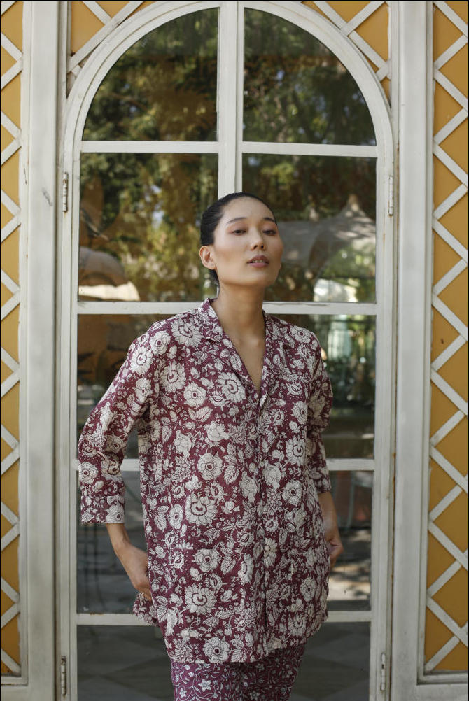 The silhouettes are simple but considered: relaxed cuts, thoughtful details, and fabrics that breathe — from handwoven cottons to delicately finished textiles rooted in Rajasthan’s craft culture. Colours stay close to the earth: muted florals, soft neutrals, and tones that age gracefully rather than fall out of season.