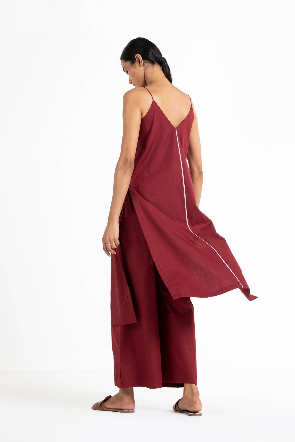 Clever cuts, asymmetric patterns, a neutral palette and simplicity of geometric details form the core aesthetic of the brand. Their love for asymmetry and imperfection clearly reflects in their silhouettes and hemlines. The label is a modern mix of conceptual and wearable clothing which defies age bar as the ensembles exude comfort, more so with their signature anti-fit coords.