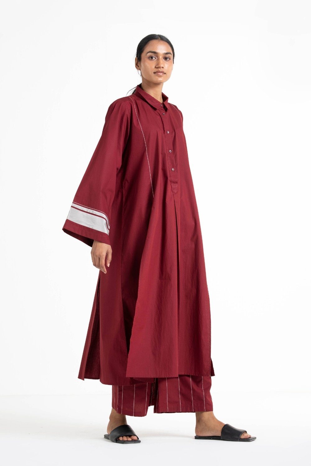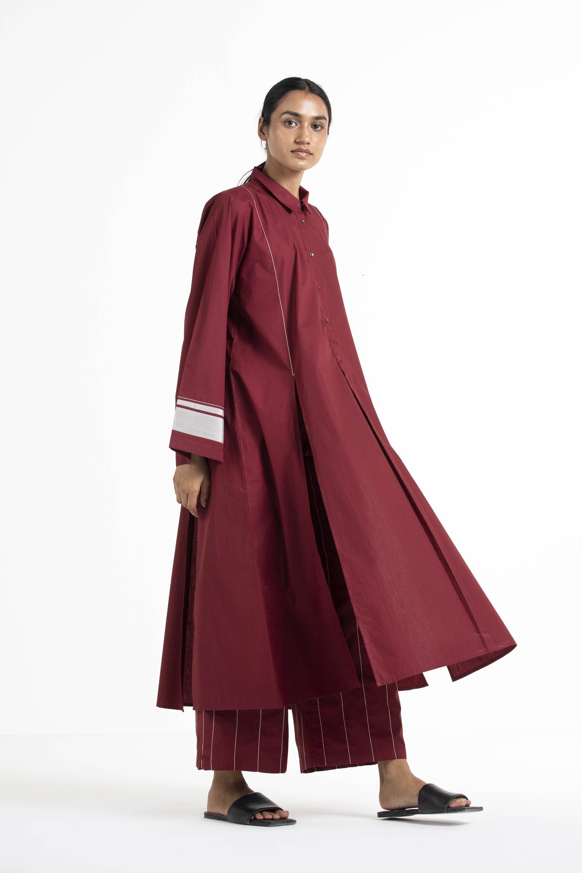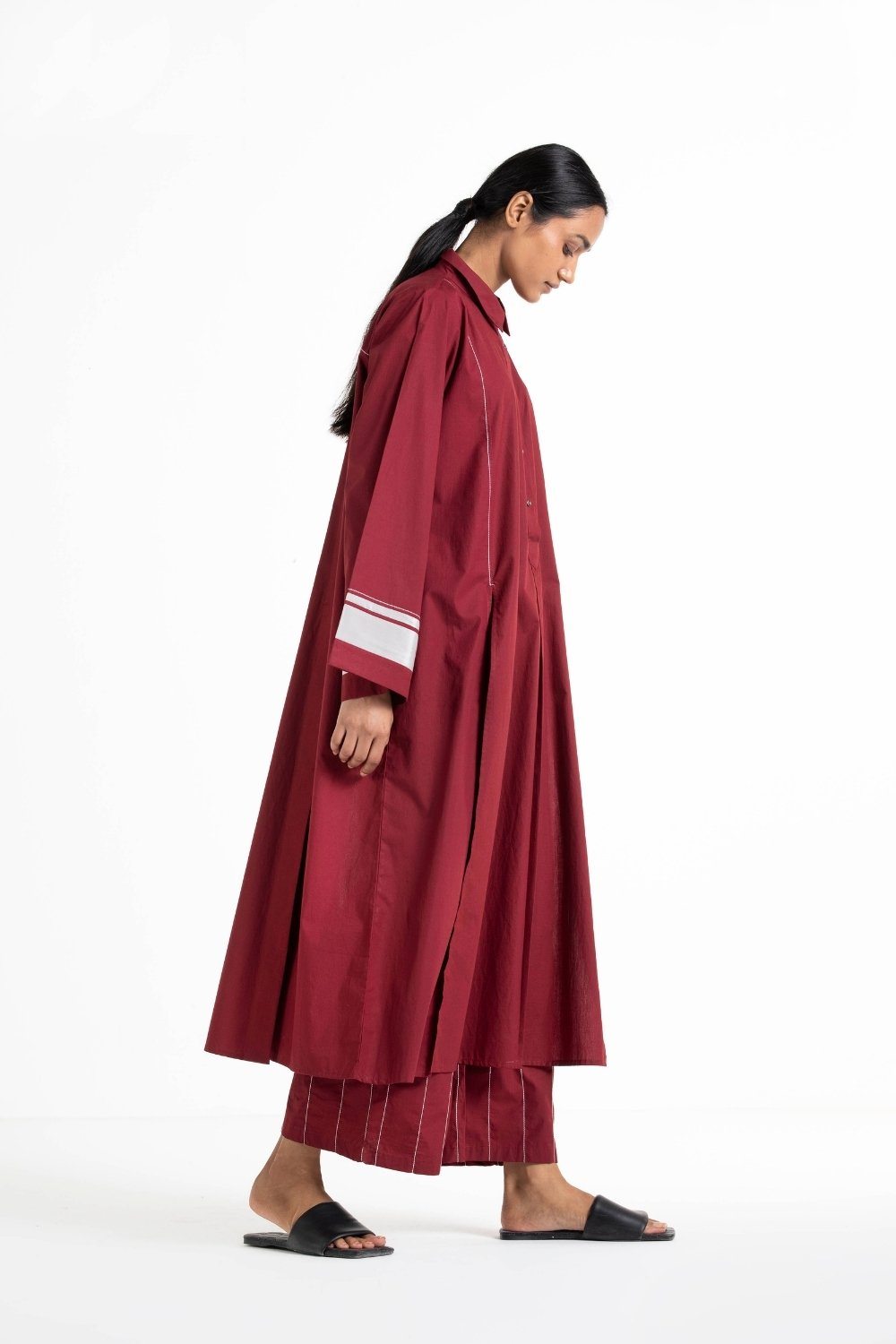 Clever cuts, asymmetric patterns, a neutral palette and simplicity of geometric details form the core aesthetic of the brand. Their love for asymmetry and imperfection clearly reflects in their silhouettes and hemlines. The label is a modern mix of conceptual and wearable clothing which defies age bar as the ensembles exude comfort, more so with their signature anti-fit coords.