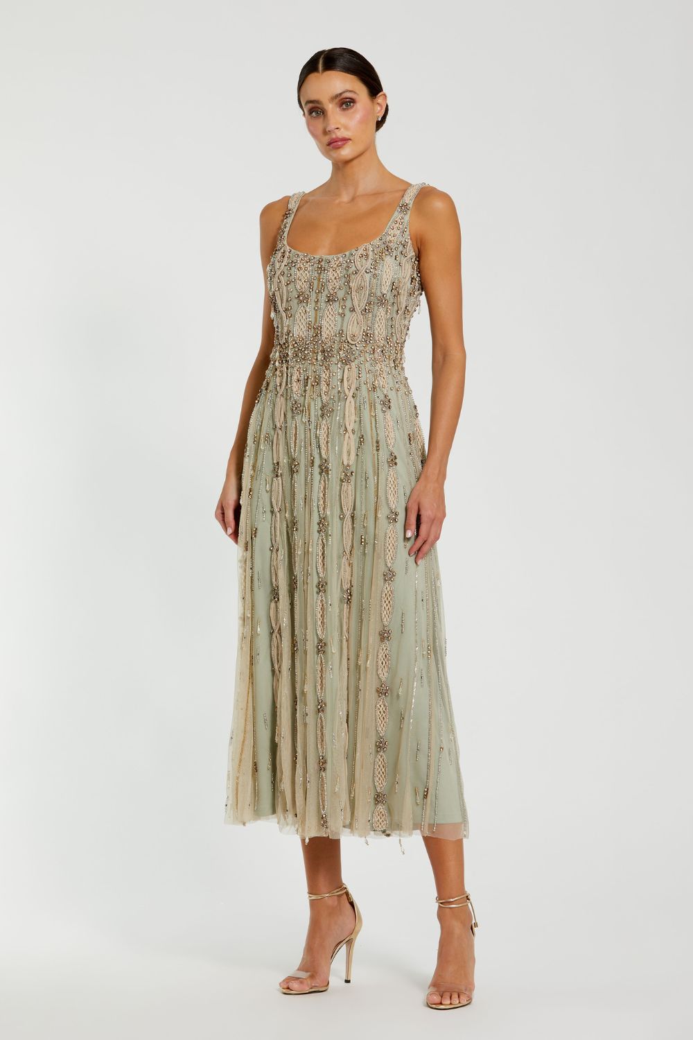 Embellished Mesh Sleeveless Scoop Neck Midi Dress