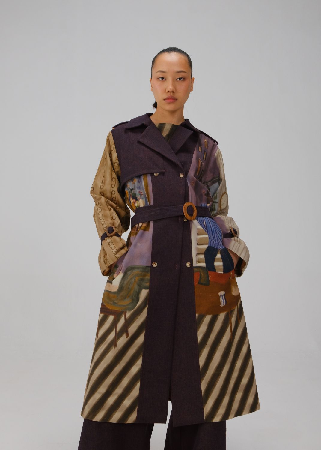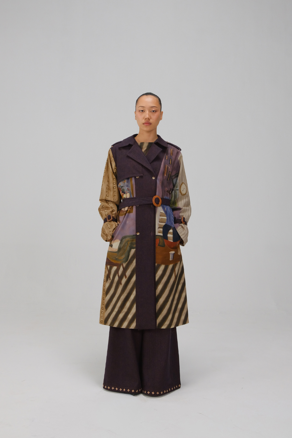 The Denim Trench reimagines the classic overcoat with an artistic edge, offering warmth and effortless layering.
