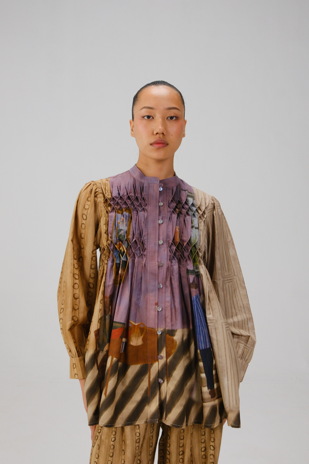 CORD blurs the line between art and attire in a way few labels dare to. Here, fabrics become canvases; illustrations—drawn by hand, steeped in imagination—flow across silhouettes that feel sculptural yet deeply wearable. Each piece has a texture of memory to it, as if it carries echoes of a past life, now reframed for a contemporary world.