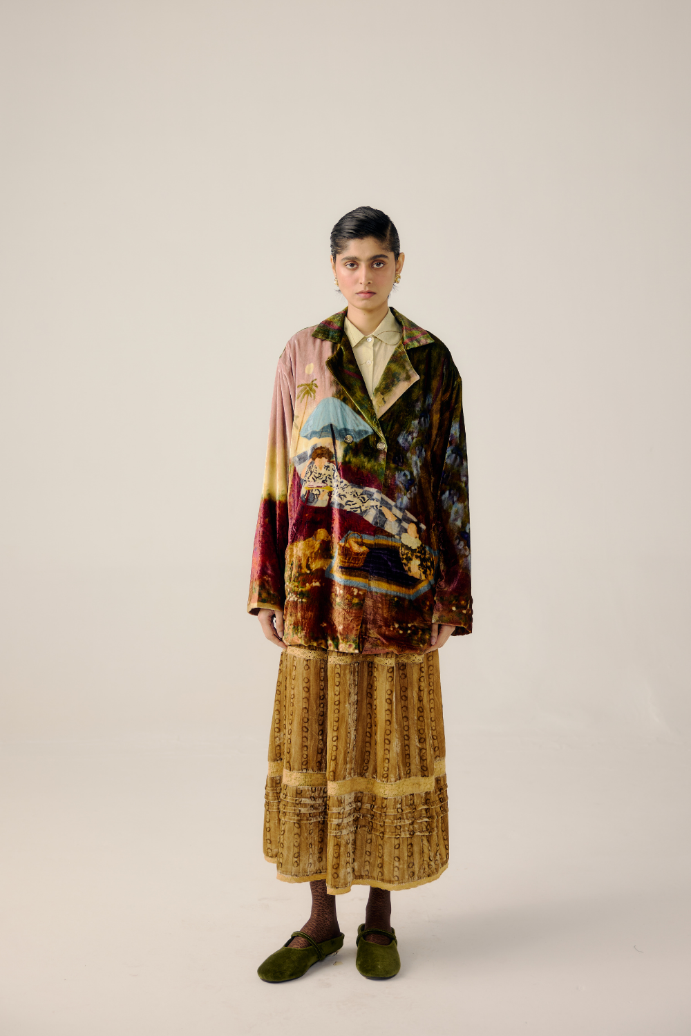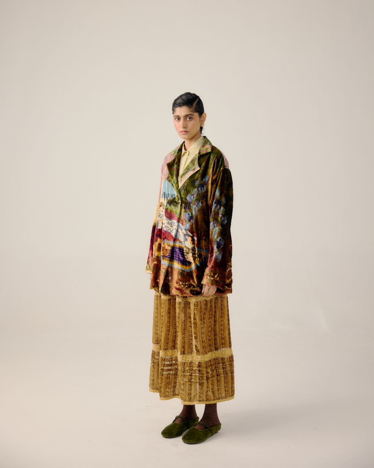 The Lisbon Set pairs the chic Lisbon Jacket in our Lakeside Print with relaxed lounge pants. The short, relaxed-fit jacket features a lapel collar and puffed sleeves, bringing effortless charm, while the pants offer ease and versatility—together creating a stylish, contemporary ensemble.