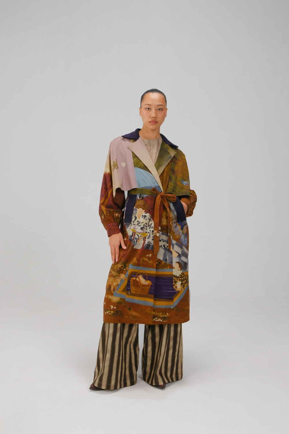 CORD blurs the line between art and attire in a way few labels dare to. Here, fabrics become canvases; illustrations—drawn by hand, steeped in imagination—flow across silhouettes that feel sculptural yet deeply wearable. Each piece has a texture of memory to it, as if it carries echoes of a past life, now reframed for a contemporary world.