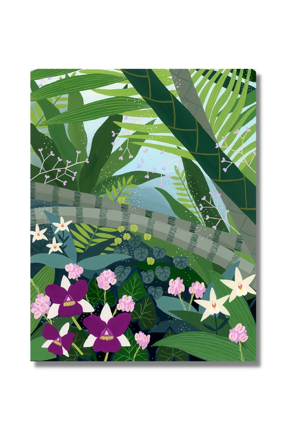 This botanical painting was inspired by the beautiful (and air-conditioned!) Cloud Forest at Gardens by the Bay in Singapore. Whenever I go, I make sure to catch the misting, which adds a whole new element of magic to the place. I find the whole experience so relaxing, and I hope this painting can help create some chill vibes in your home as well!