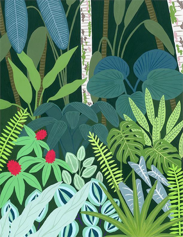 This painting was inspired by the beautiful and lush botanic gardens in Singapore. The botanic gardens are a UNESCO World Heritage site and have different themed gardens including a whole area dedicated to Orchids alone! You can also spot multiple types of ginger flowers (as featured in this artwork) that grow here in Singapore.