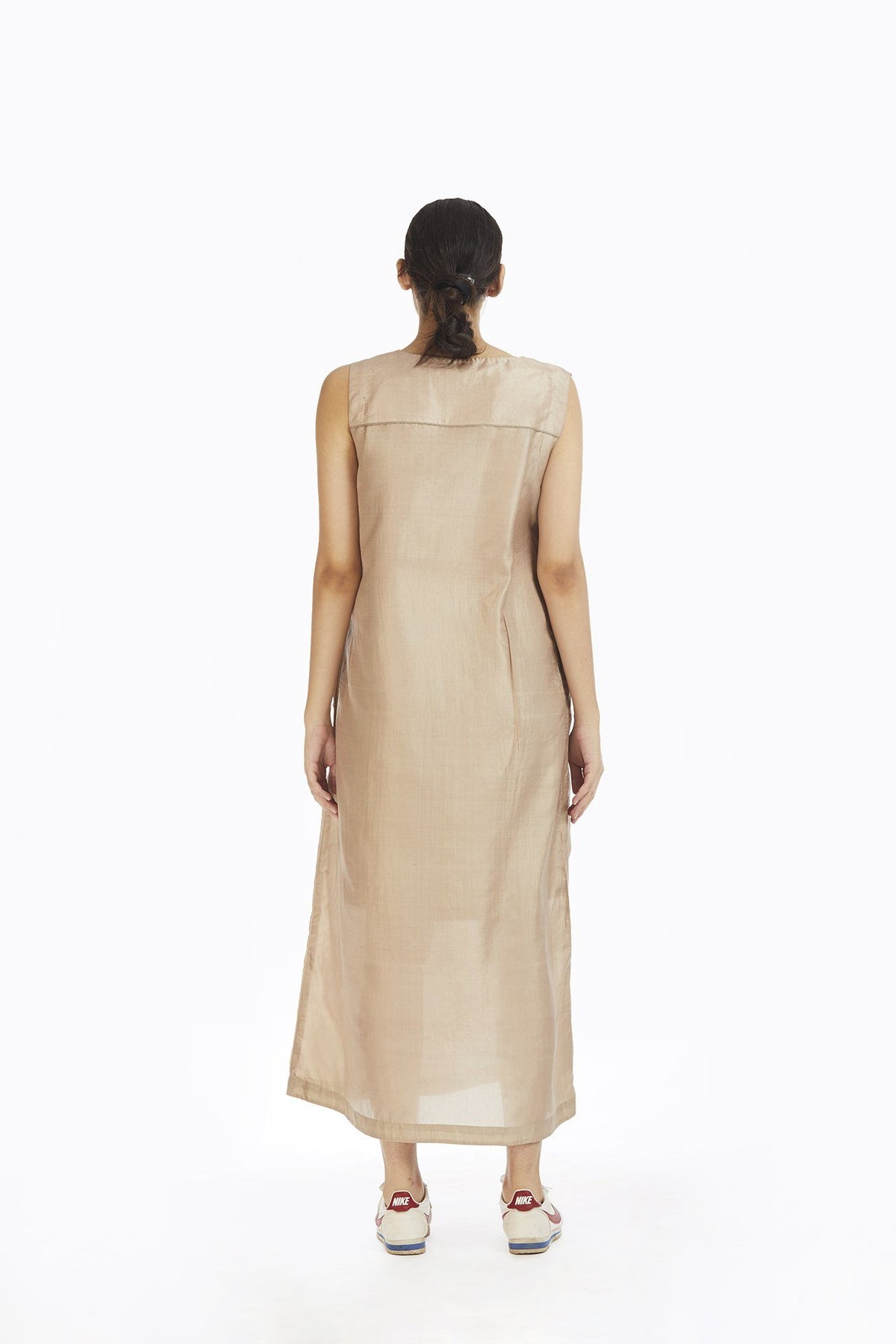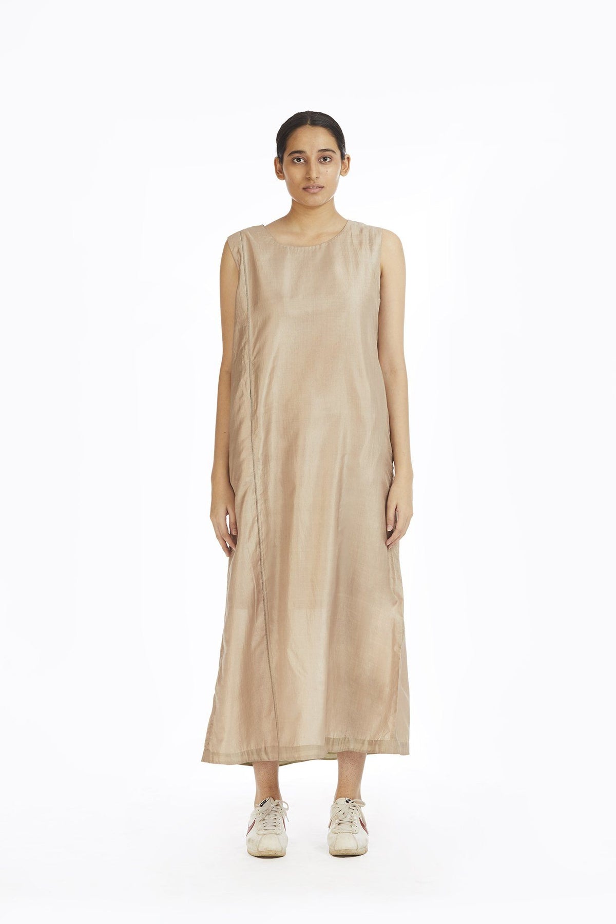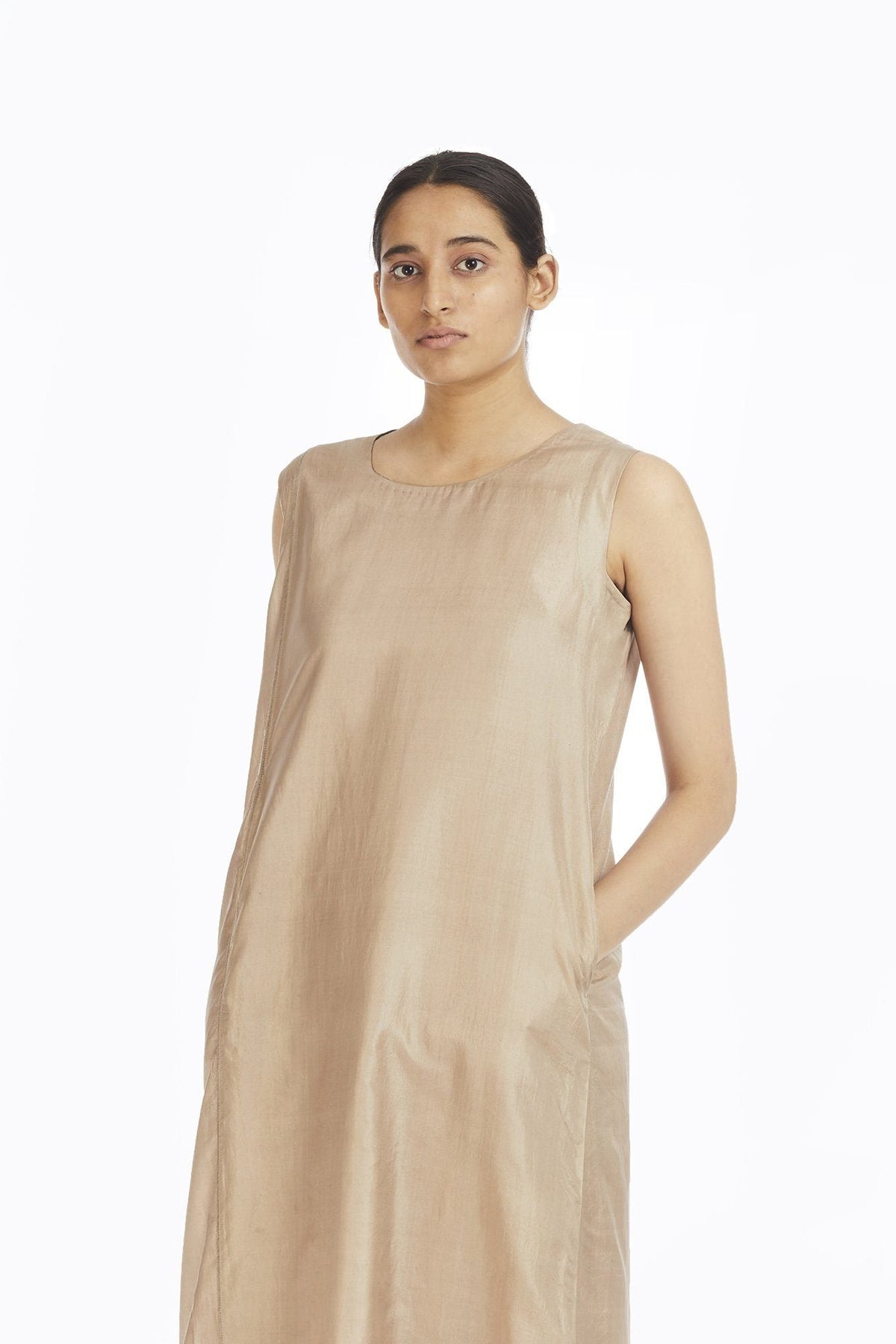 Handwoven in Silk, this long dress makes for a luxurious and comfortable wear. A wardrobe essential this is an innovative smart mix of materials . An akaaro bestseller the fabric is designed by AKAARO and hand woven in West Bengal , India.